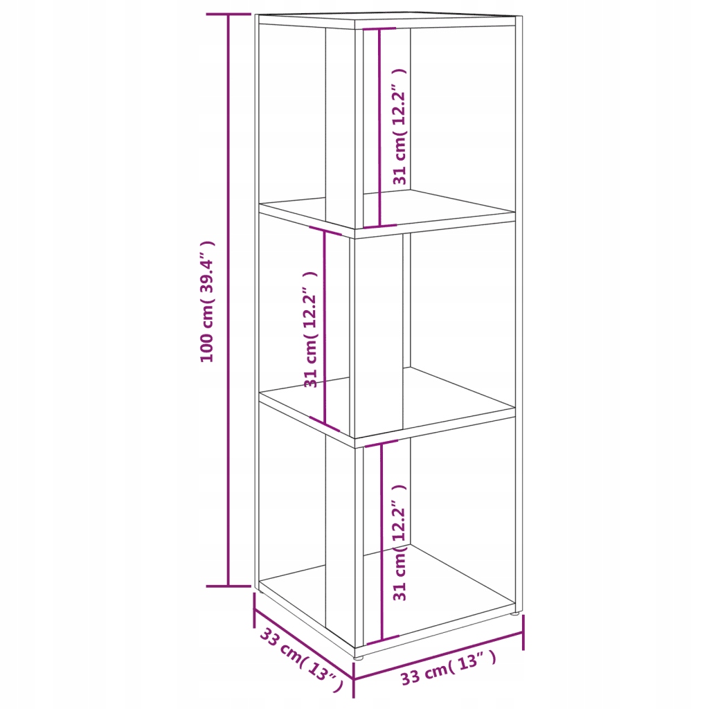 Кутовий шафа з 3 відділеннями, чорний, 33x33x100 см