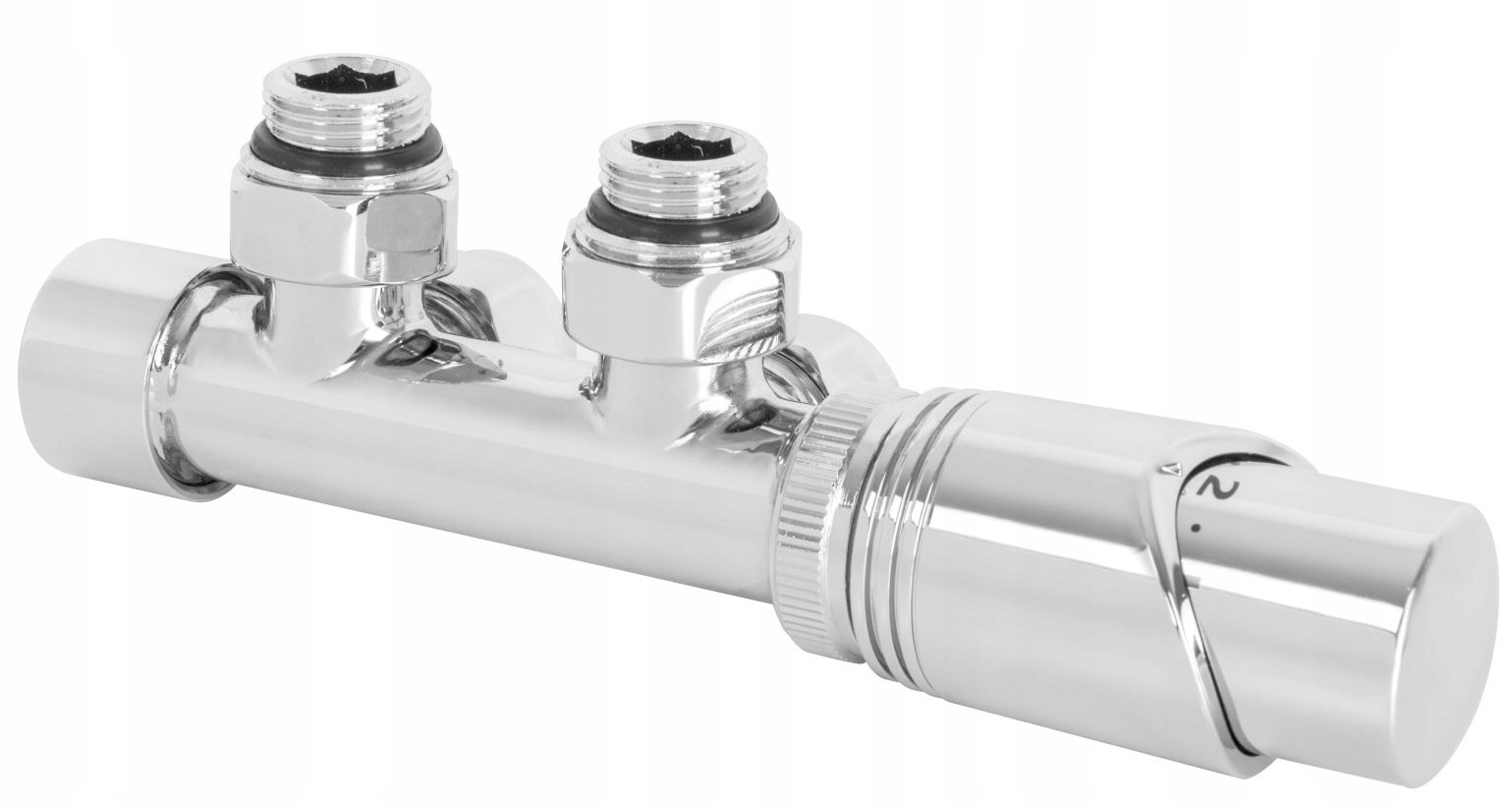 Набір кутових термостатичних Duoplex CHROM підходить для підключення радіатора з відстанню 50 мм. У набір входить:
