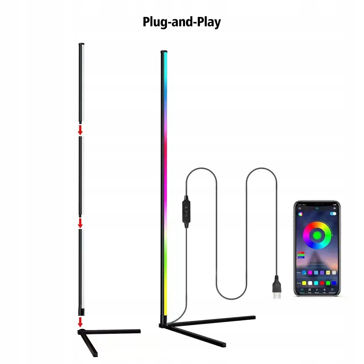КУТОВИЙ ТОРШЕР З RGB LED BLUETOOTH ПУЛЬТОМ ДИСТАНЦІЙНОГО КЕРУВАННЯ