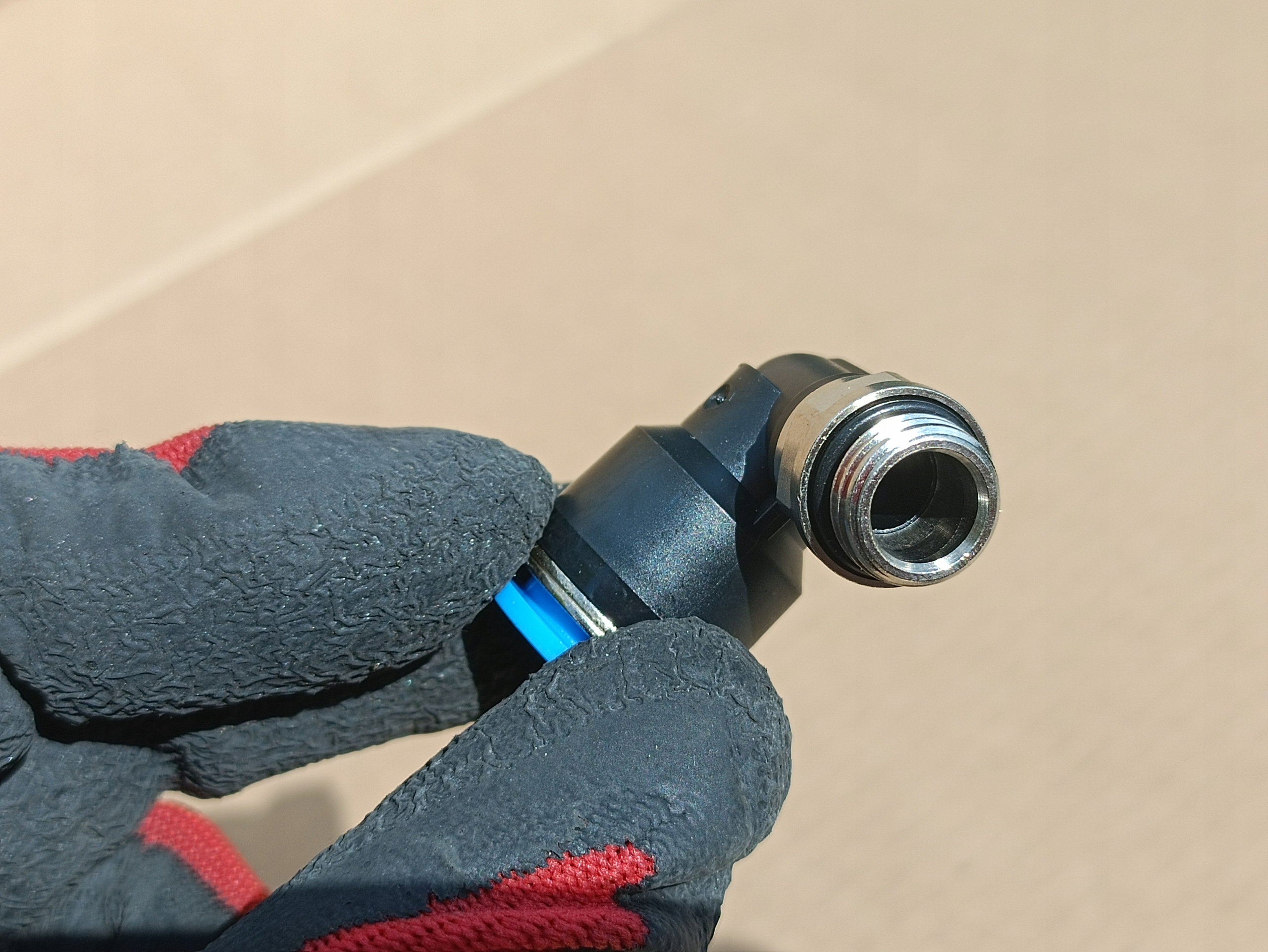 Кутовий вставний пневматичний з'єднувач fi 12 мм, різьба 1/4" зовнішня PL 12-G02