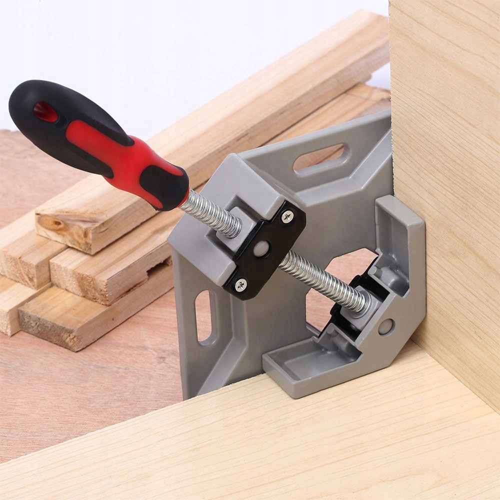 - Столярний затискач забезпечує точне притискання з'єднуваних елементів під кутом 90 градусів.