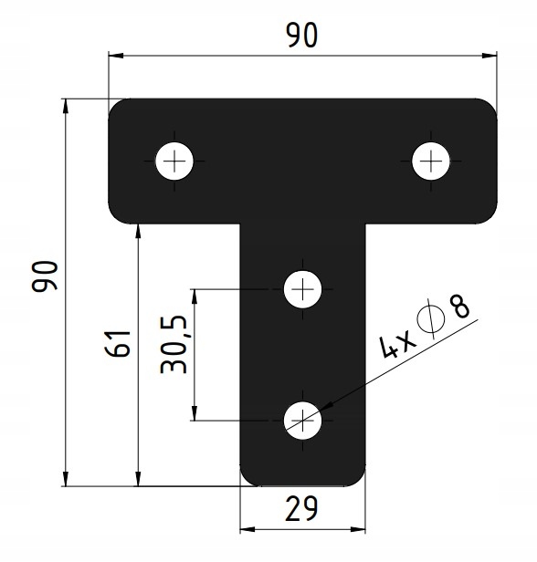Кутовий з’єднувач для структурних профілів TT_8_90 T-Type 3030 M8 Torrin V-slot