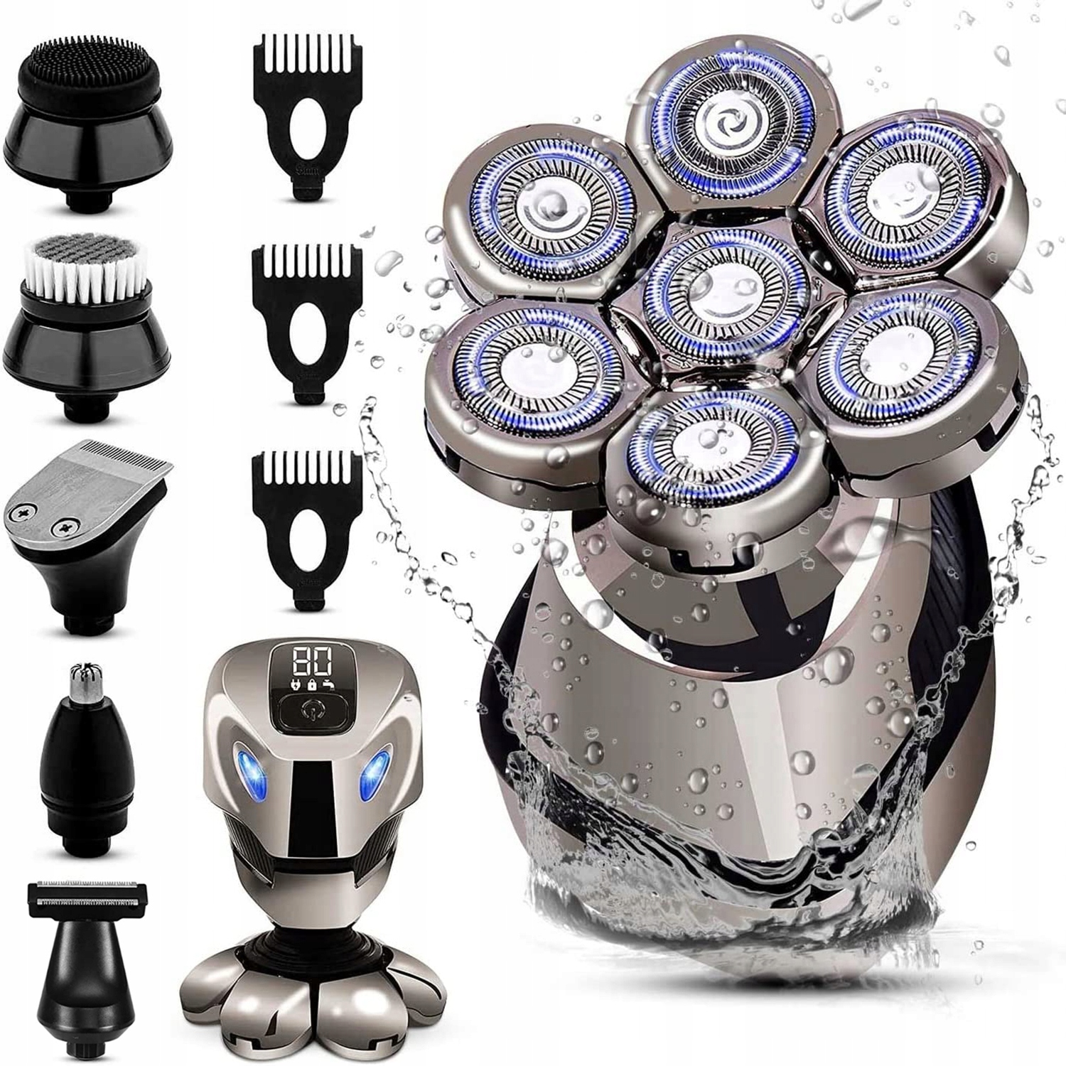 Електробритва з 7 знімними головками, що забезпечує все необхідне для стрижки волосся та догляду за обличчям. Портативна електробритва - це універсальний пристрій, завдяки якому ви легко впораєтеся з тижневим ростом бороди або доглядаєте за бородою, вусами і навіть волоссям на грудях, носі і вухах. Завдяки цьому ви можете створити образ стильного та елегантного чоловіка всього за кілька хвилин.