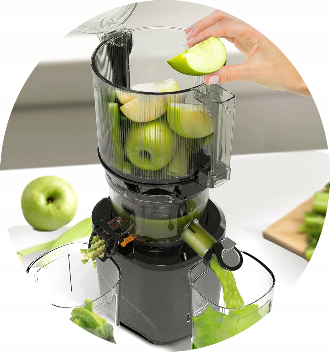 Найширший вхідний отвір на ринку з діаметром 17,5 см,незрівнянно ширшим, ніж у попередніх моделях повільних соковижималок Kuvings, поліпшить вашу роботу та заощадить час