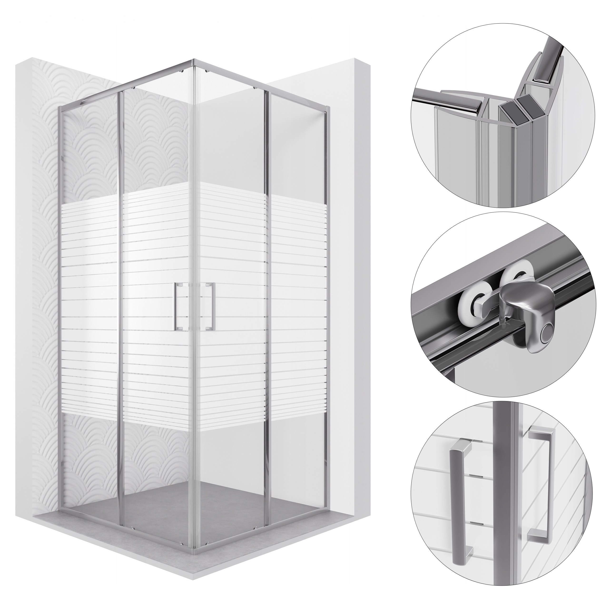 ДУШОВА КАБІНА НАПІВКРУГЛА КВАДРАТНА 80x80, РОЗСУВНА, БІЛА СМУЖКА