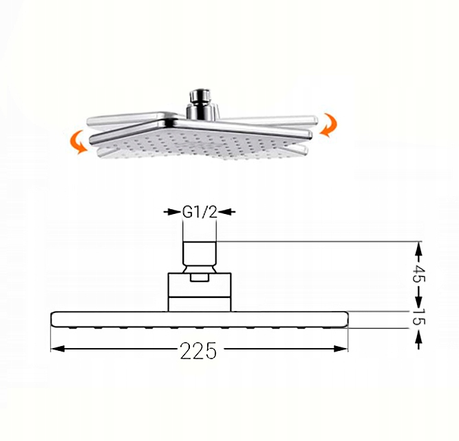КВАДРАТНИЙ ДОЩОВИЙ ДУШ 22 см ХРОМОВИЙ дзеркало