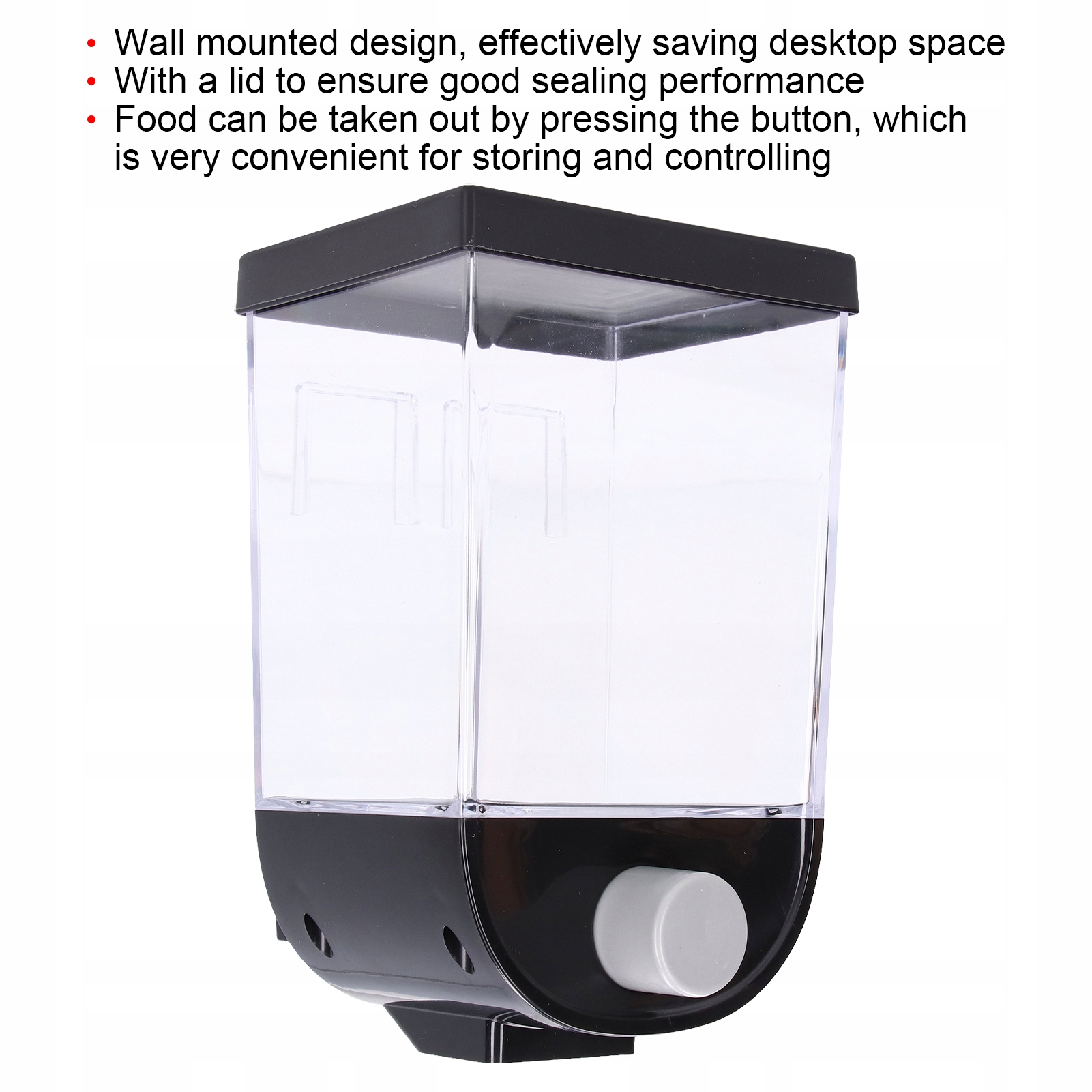 4. [Велика ємність та прозорість] Диспензатор сухої їжі має велику ємність, з типом пресу, бочка бочка є прозорою, тому ви можете легко побачити вміст всередині.
