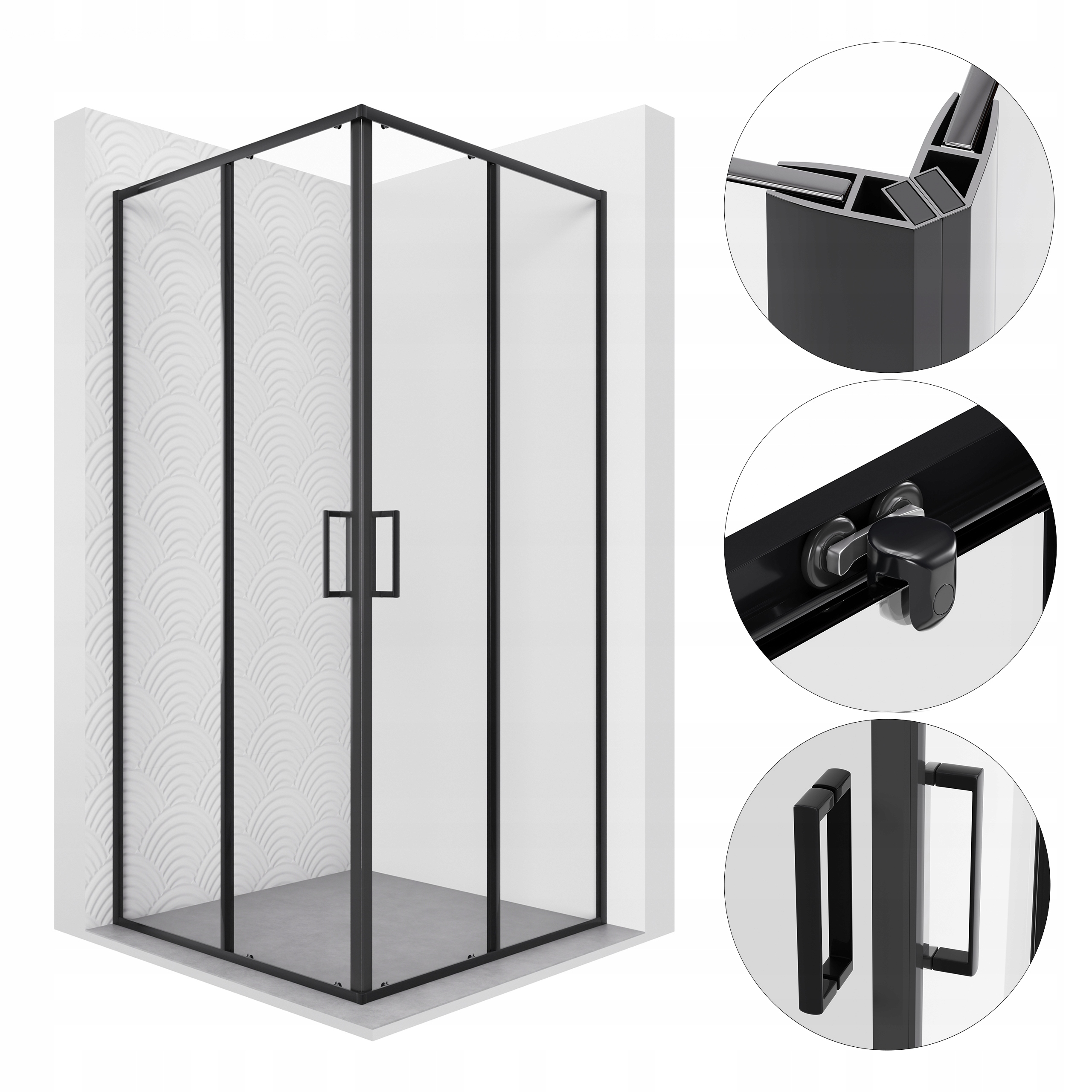 Квартира для душу 70x70 Чорний ковзання
