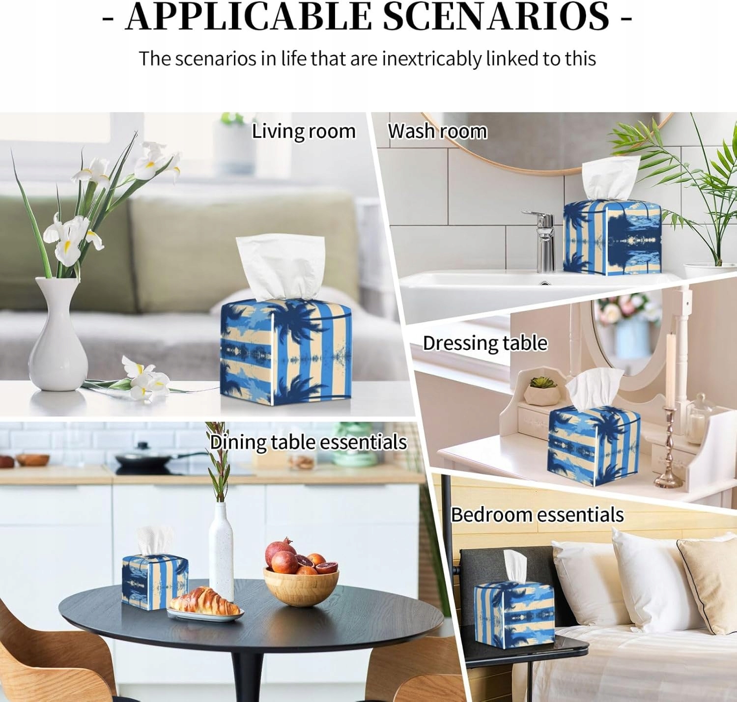 Дизайн: наша коробка для серветок надрукована унікальними та стильними візерунками, які легко приховають монотонну коробку для серветок. Він не тільки добре поєднується з різними меблями та додає нотки веселощів декоруванню вашого дому, але також чудово підходить для ванної кімнати, квартири.