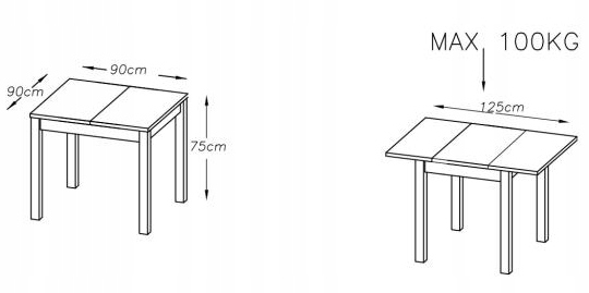 - Зроблено з ламінованої меблевої тарілки у кольоровому судні . квадратний верх вимірювання 90x90 см, складання до розмірів 125x90 см.