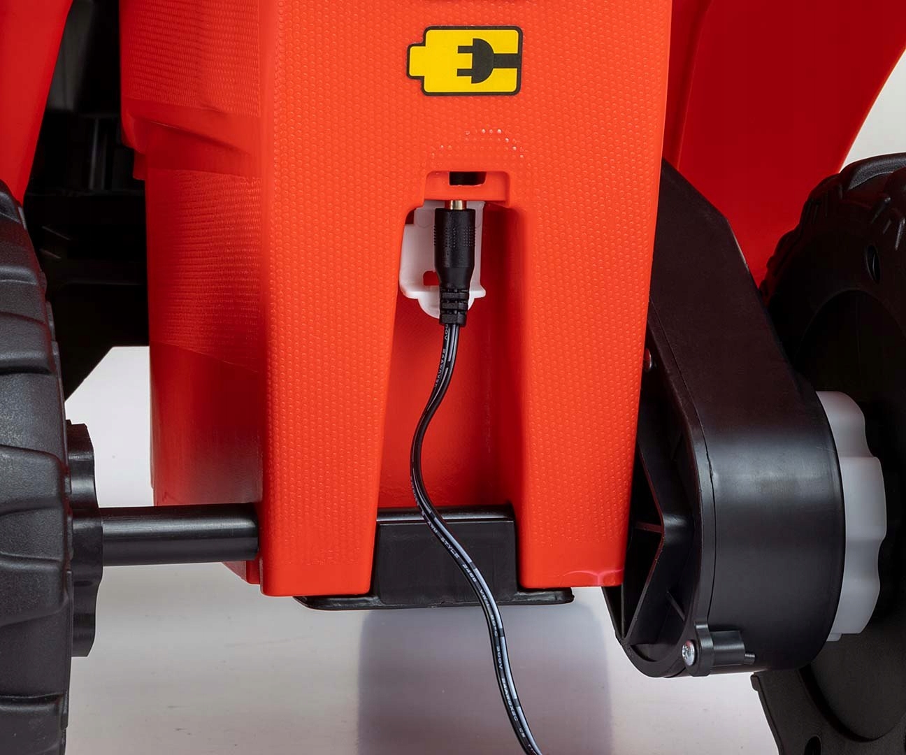 Великі широкі колеса з позашляховим протектором забезпечують мобільність під час поїздок поза домом, а профільоване сидіння забезпечує належний комфорт і безпеку для найменших користувачів. Однак сталеві колісні осі гарантують стійкість і довговічність квадроцикла. У спорядження також входить гудок, який зробить розвагу ще цікавішим!