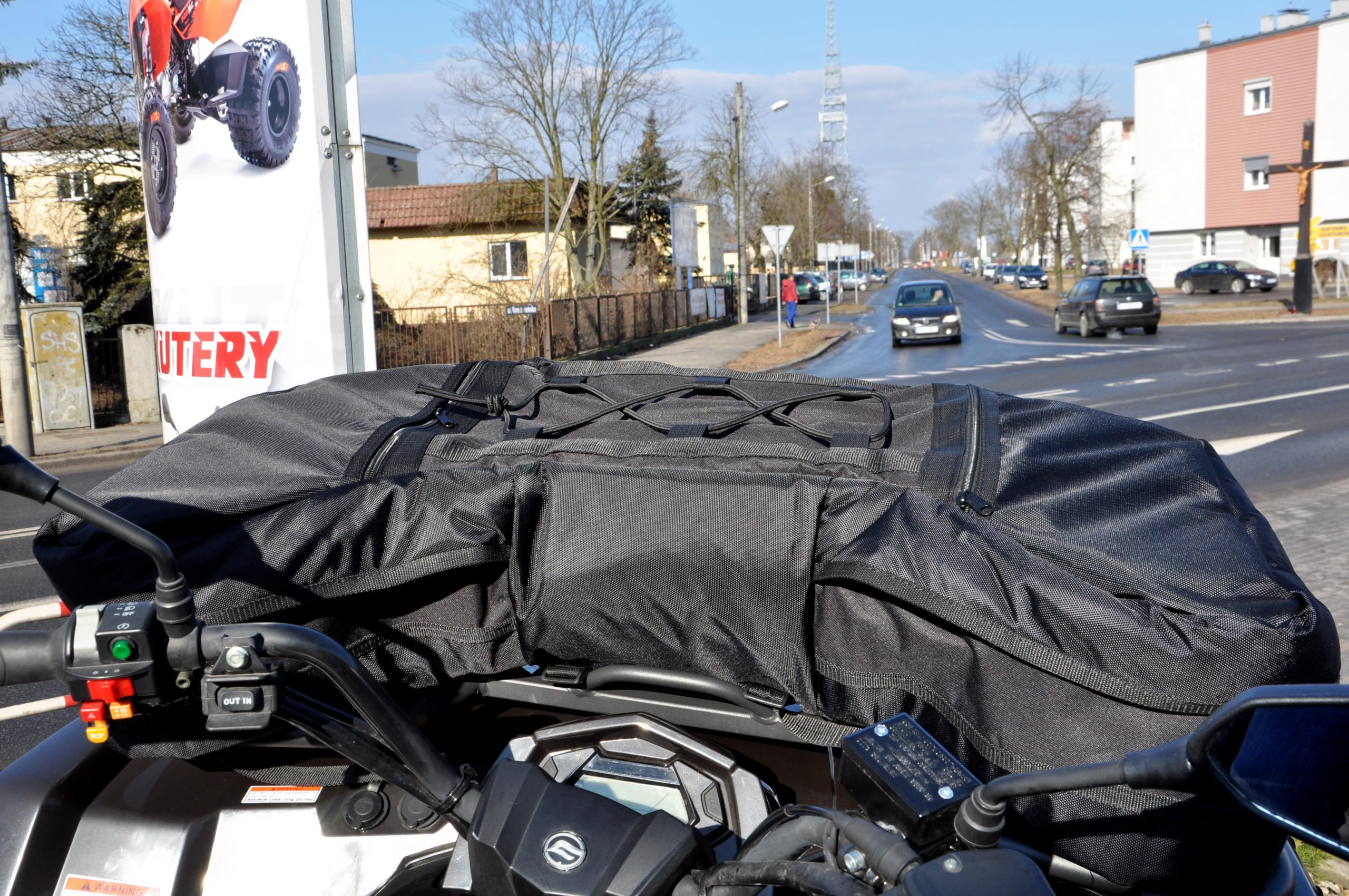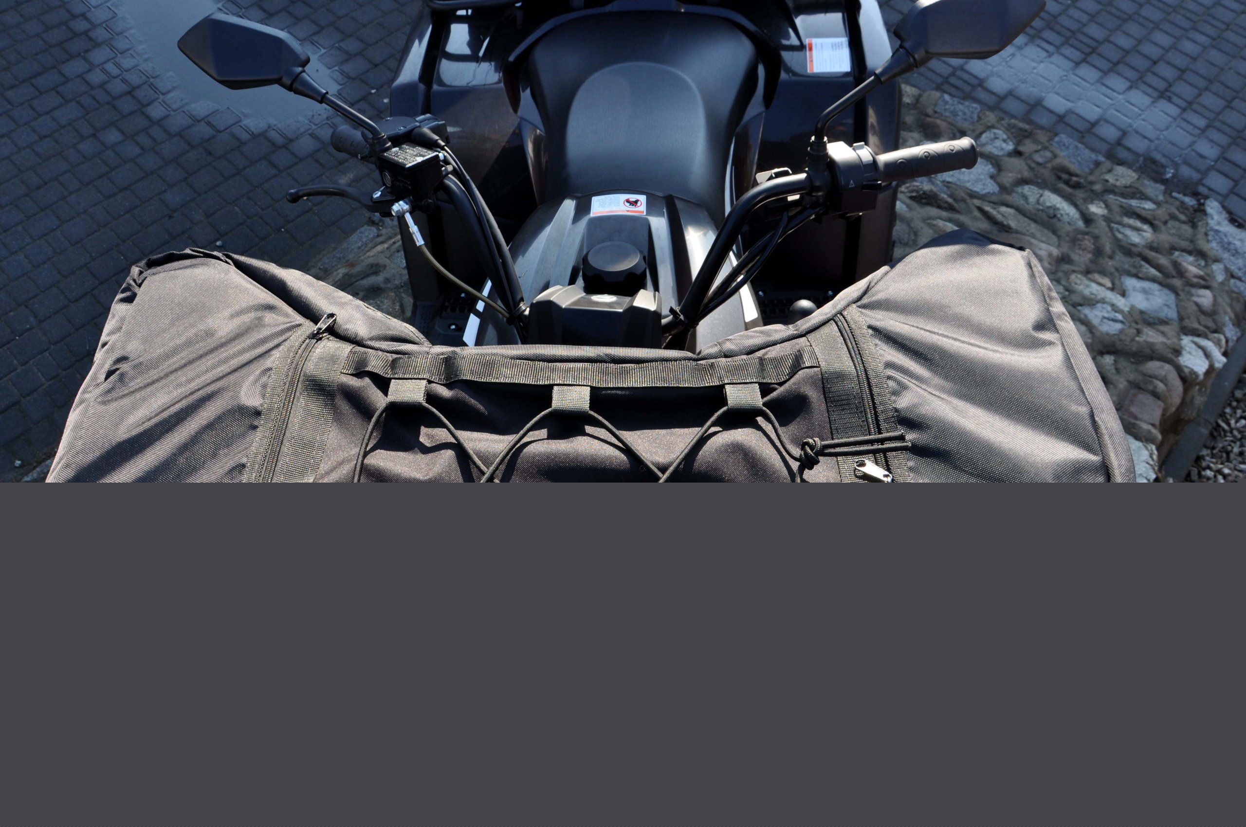 Завдяки міцній сумці, прикріпленій до багажника, ви можете збільшити простір для транспортування речей на своєму квадроциклі. Він виготовлений з міцного поліефірного матеріалу та має знімні/регульовані ремінці, які дозволяють прикріпити додаткові предмети до верху.