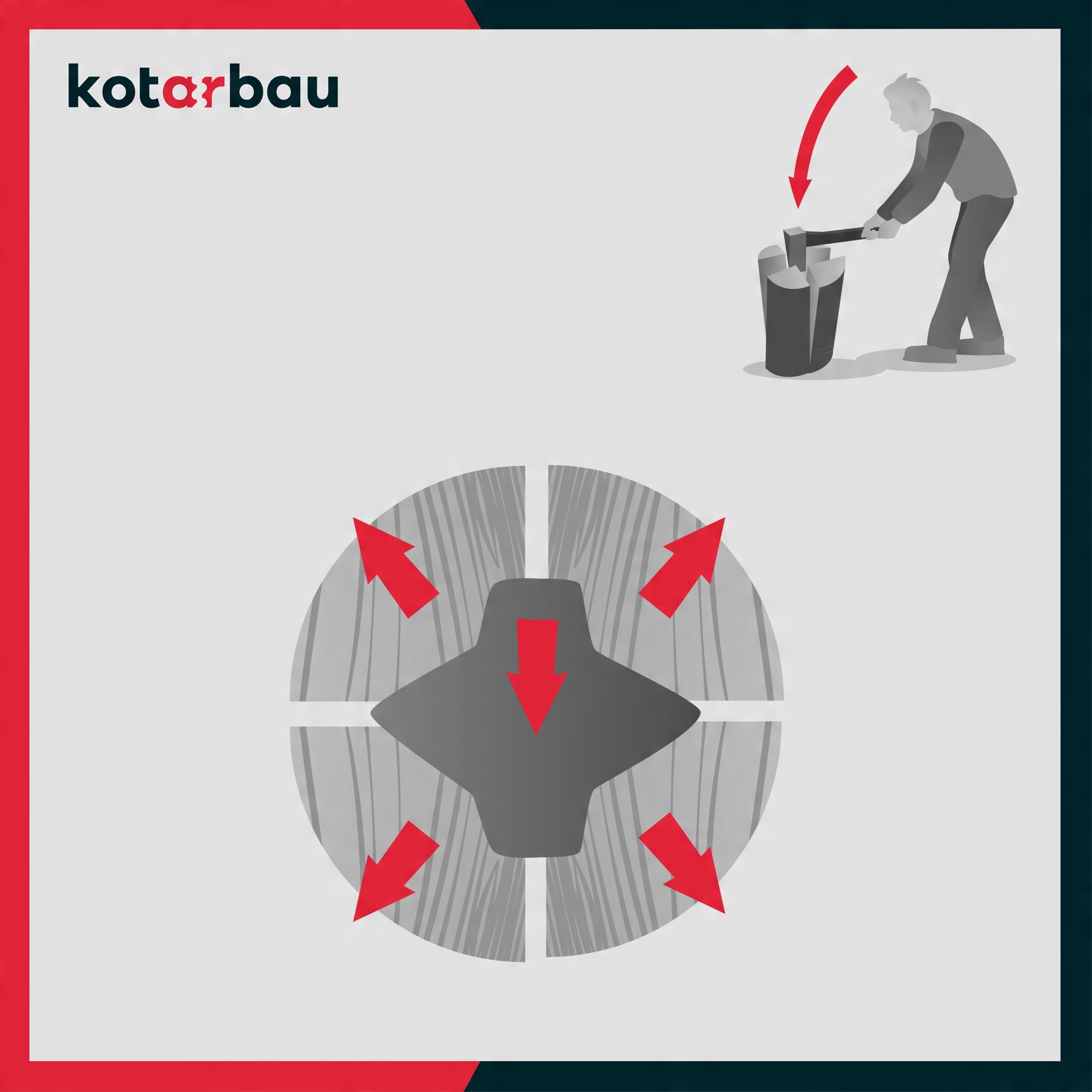 СТІЙКІСТЬ - Наш продукт стійкий до пошкоджень і ударів сокирою, його характерний помаранчевий колір робить його помітним під час розколювання деревини , а його форма дозволяє ефективніше та швидше рубати деревину, використовуючи набагато менше сили. Зазвичай заготівля дров вимагає чималої сили, відповідної техніки і часто пов’язана з легкими травмами, але за допомогою клина KOTARBAU рубати дрова стає приємніше і набагато легше.