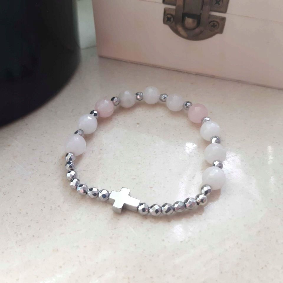 з гематитовим хрестом, на міцній ювелірній резинці.