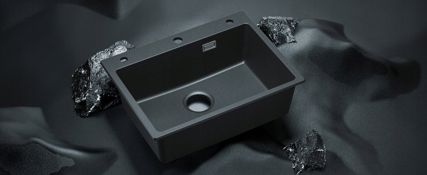 ✦ Мийка виготовлена з 80% високоякісного кварцового каменю та 20% смоли.
