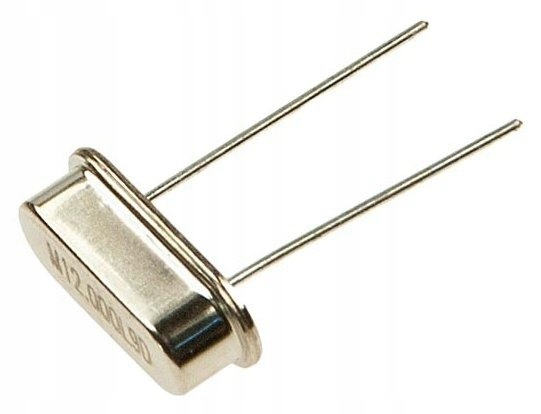 Кварцовий резонатор. Працює з мікроконтролерами AVR: ATmega, XMEGA, ATtiny та іншими. Корпус: HC49 низький; стабільність: +/- 30 ppm