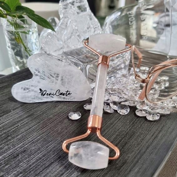 КВАРЦОВИЙ РОЛИКОВИЙ МАСАЖЕР ДЛЯ ОБЛИЧЧЯ + ГУА ША