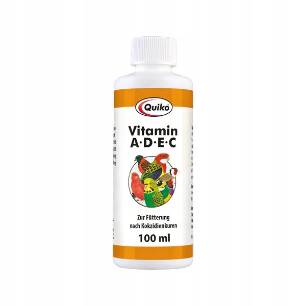 Quiko Vitamin Adec Високоефективна комбінація вітамінів ADEC. Основний набір вітамінів у рідині після лікування кокцидіозу або як підготовка до сезону розмноження. Завдяки Quiko вітаміну A-D-E-C домашні птахи також готуються до сезону розмноження. Рекомендується після лікування кокцидій. Підтримує птахи білої породи з рецесивним фактором завдяки оптимальному вмісту вітаміну А.