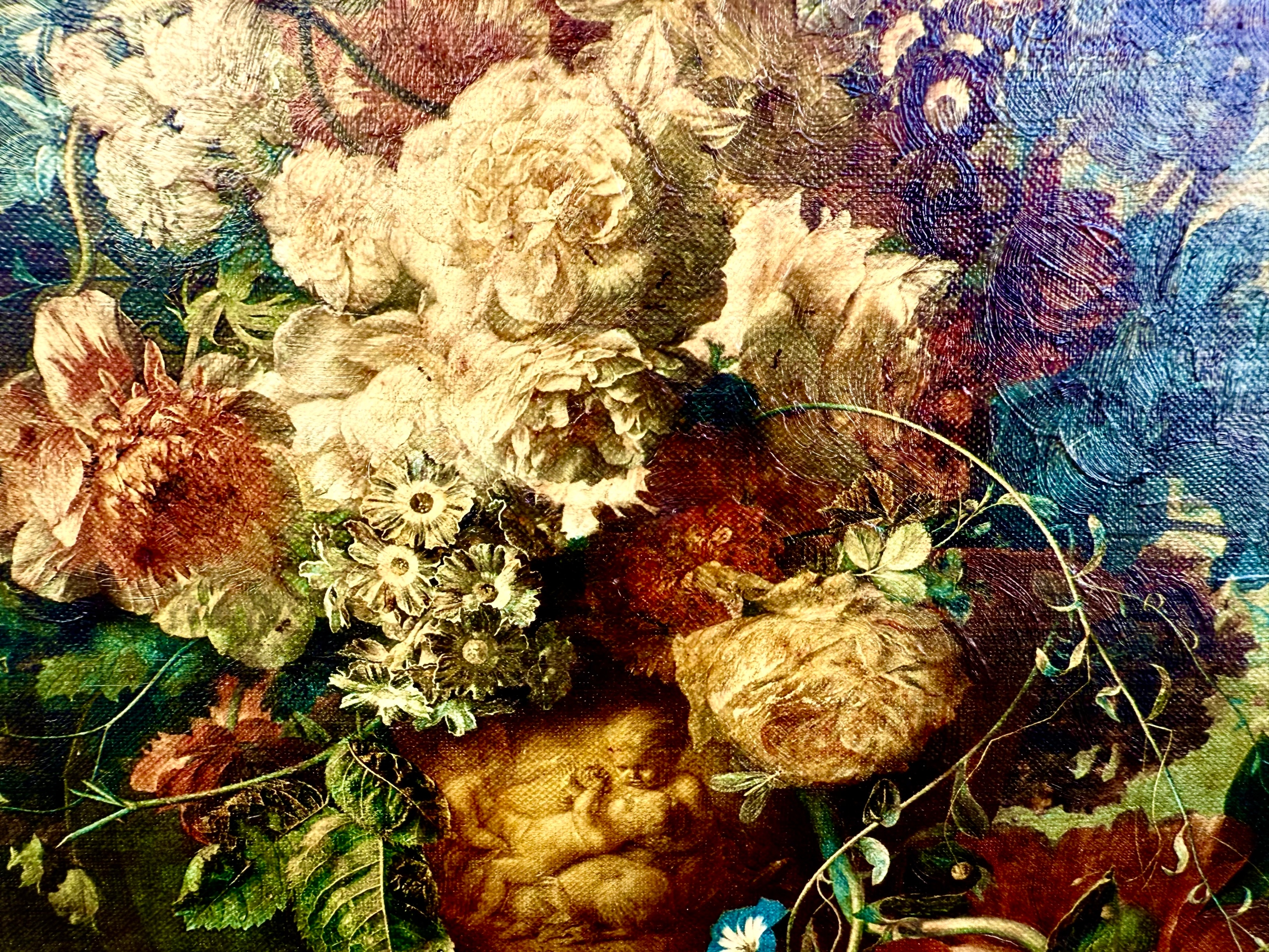 КВІТИ - РЕПРОДУКЦІЯ НА ПОЛОТНІ - ГАРНА СТАРОВА КАРТИНА - ШАНС АКЦІЇ