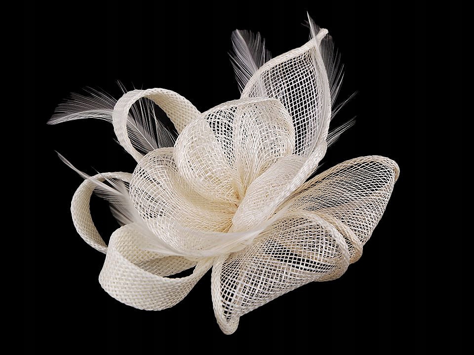 Елегантний фасцинатор чудово підходить для урочистих випадків, кульок або до театру. Його також можна використовувати як унікальна брошка. Він виготовлений з сітки Modnia, яка розташована у формі пелюсток і багатьох переломів різних розмірів. Ціле розташоване в цікавій квітці, прикрашеній пір’ям.