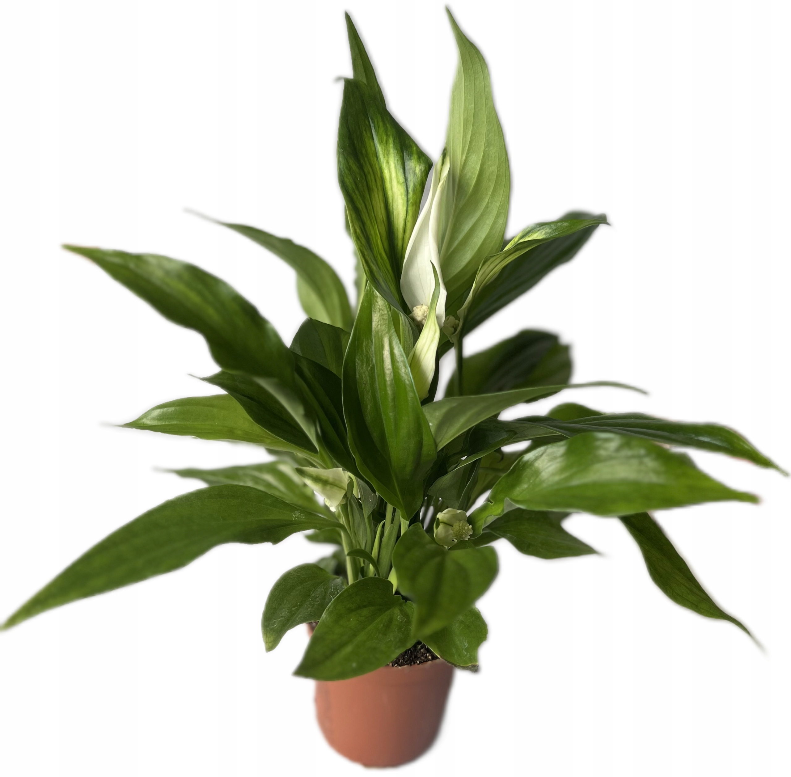 Спатіфілла, зелена красуня прямостоячої форми, ідеальний вид для всіх «початківців» скляних садівників. Він наповнить композицію своїм блискучим зеленим листям.
