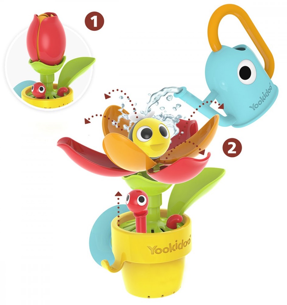 іграшка для води сповнена дивовижних реакцій. Використовуючи поливу, поливайте горщик черв'яком і квіткою. Таким чином ви почнете ланцюгову реакцію повну веселощів. Маленький черв’як починає повільно підніматися. Відкриті пластівці, і всередині з’являється джмель.