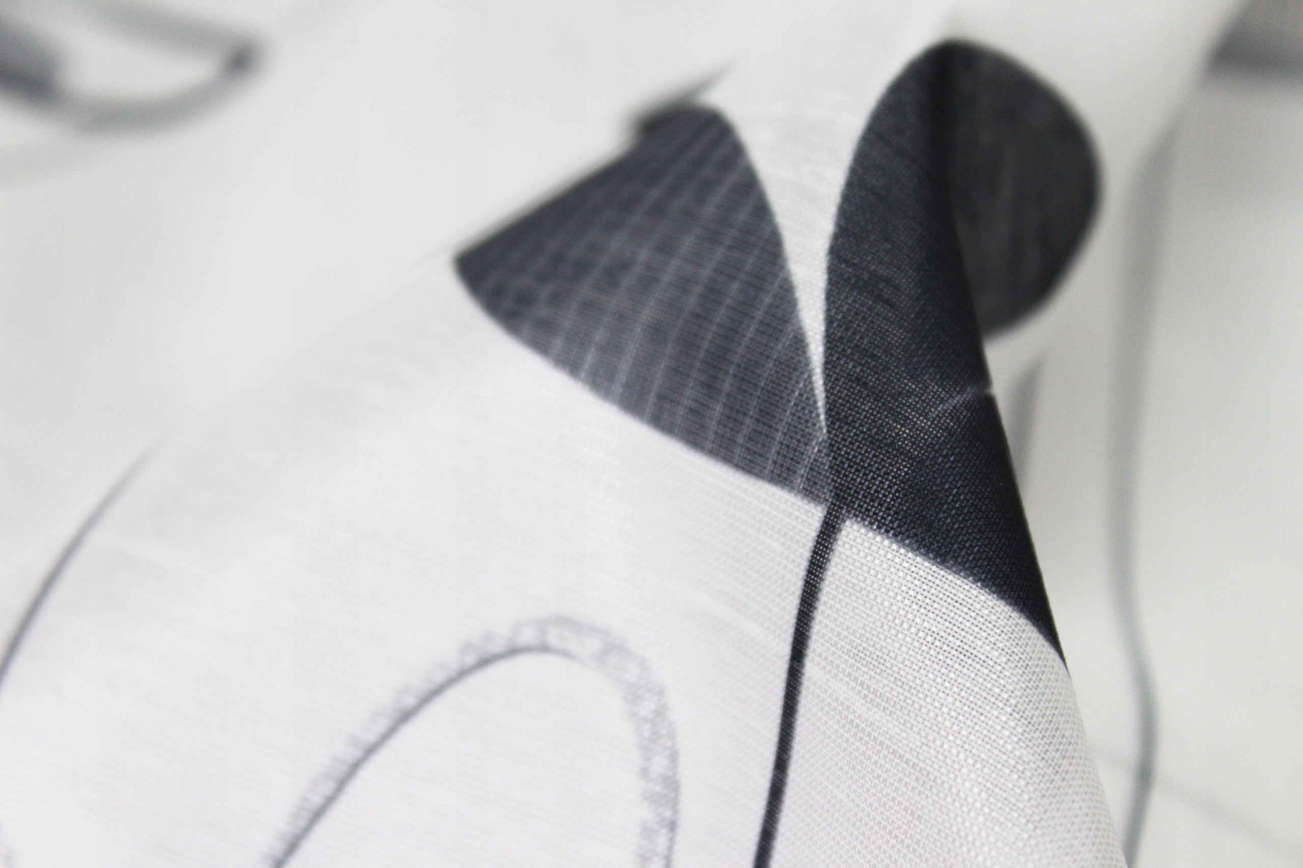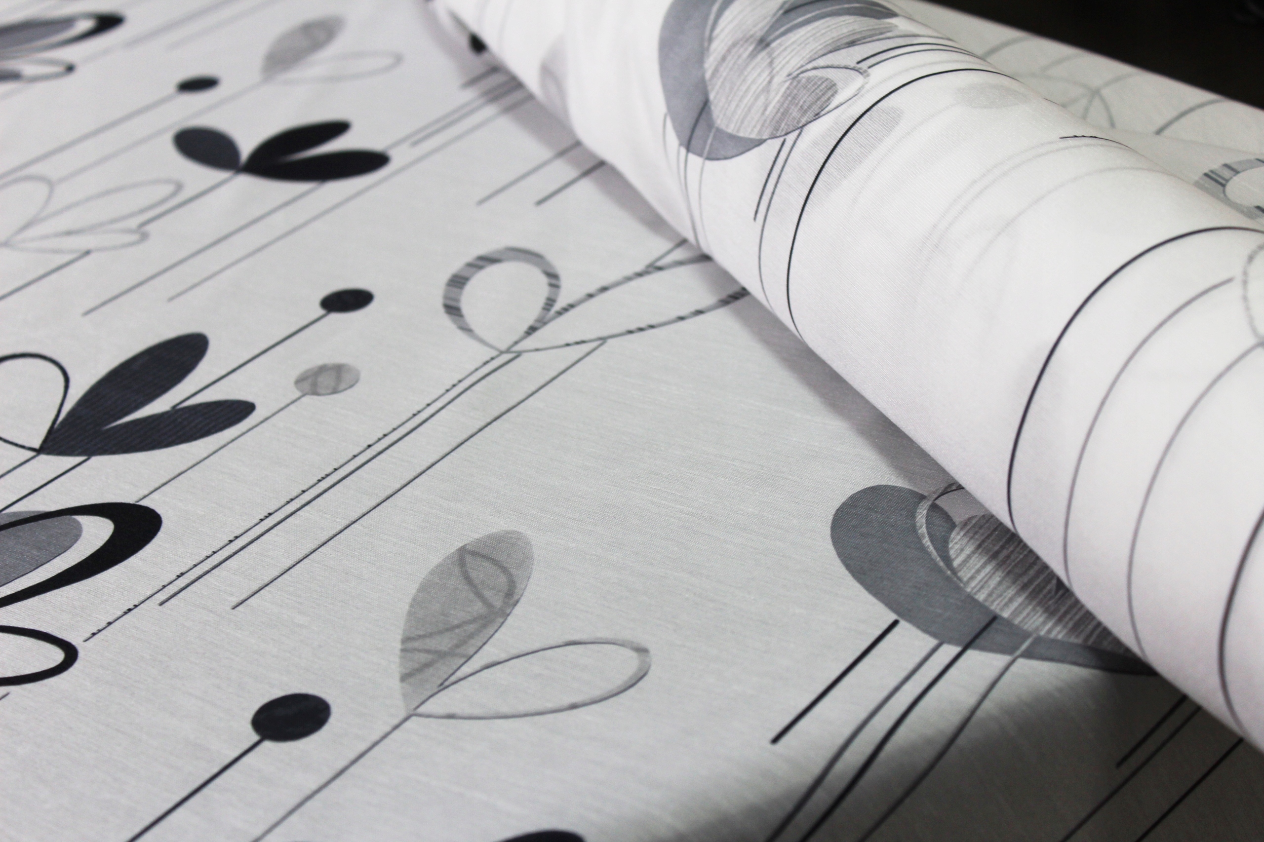 Високоякісна тканина з великими чорно-сірими квітами на білому фоні