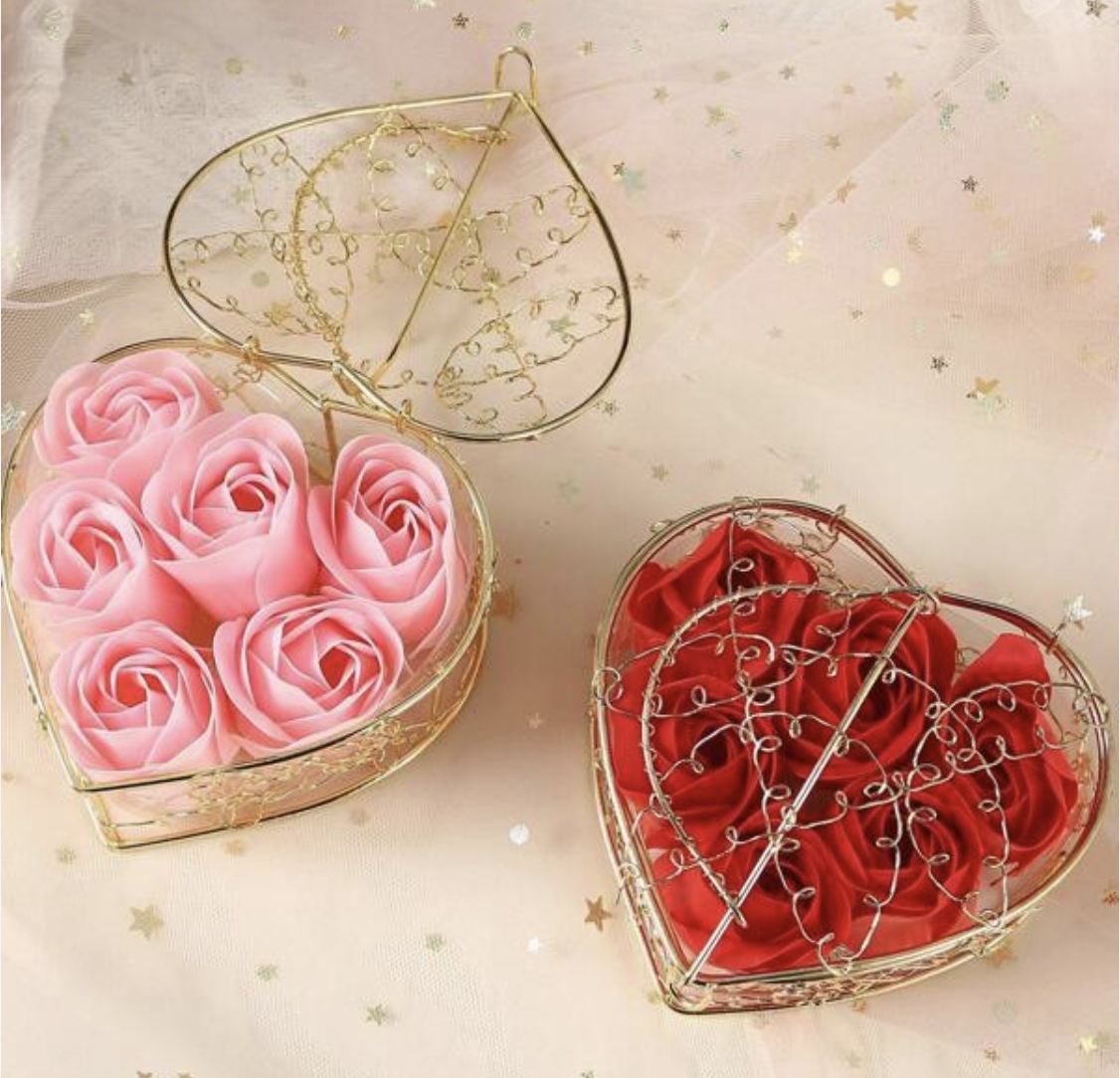 Ця декоративна коробка містить гарно створені квіти з мила, які виглядають справжніми, але їх можна використовувати для купання чи прикраси.