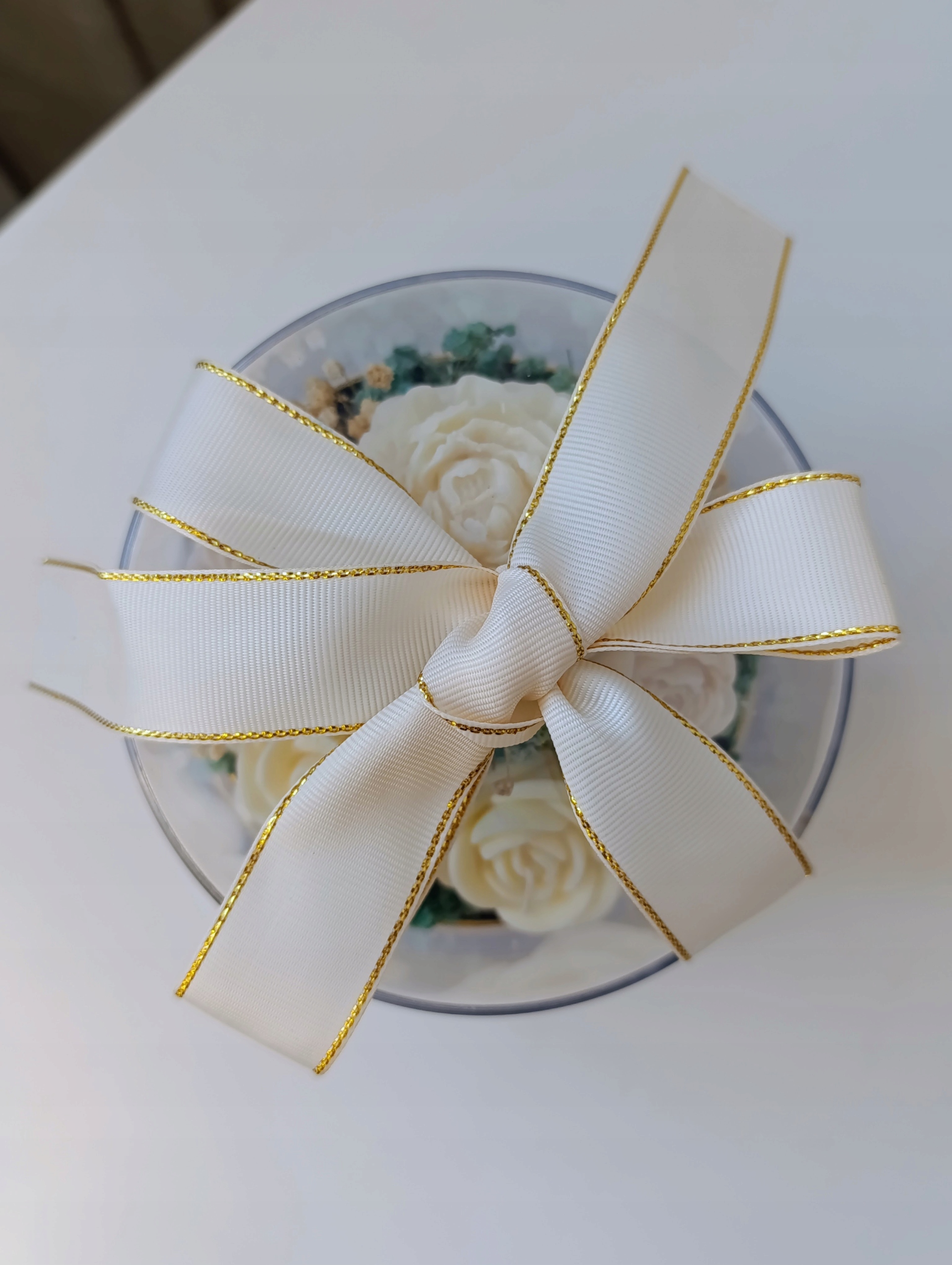 • Оздоблення: Стильна, широка кремова та золота стрічка, що надає всьому цьому королівського характеру.