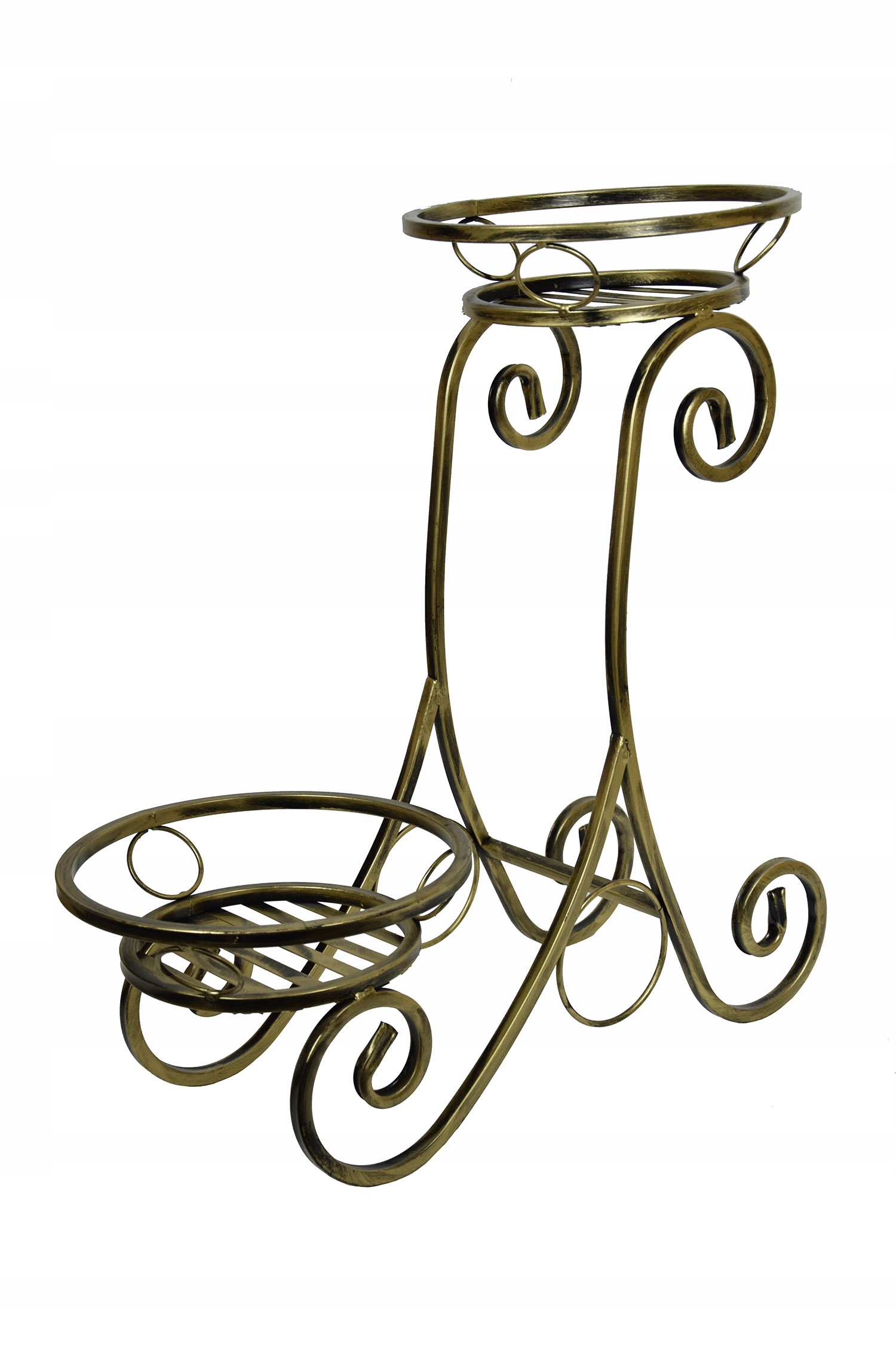 Польського виробництва, стійка, міцно виготовлена з металу золото-патина. Підставка має дві міцні основи для квіткових горщиків з максимальним розміром дна 20 см. Вона відмінно виконує своє призначення і завдяки ідеально виконаним деталям прикрашає будь-який інтер'єр і терасу.