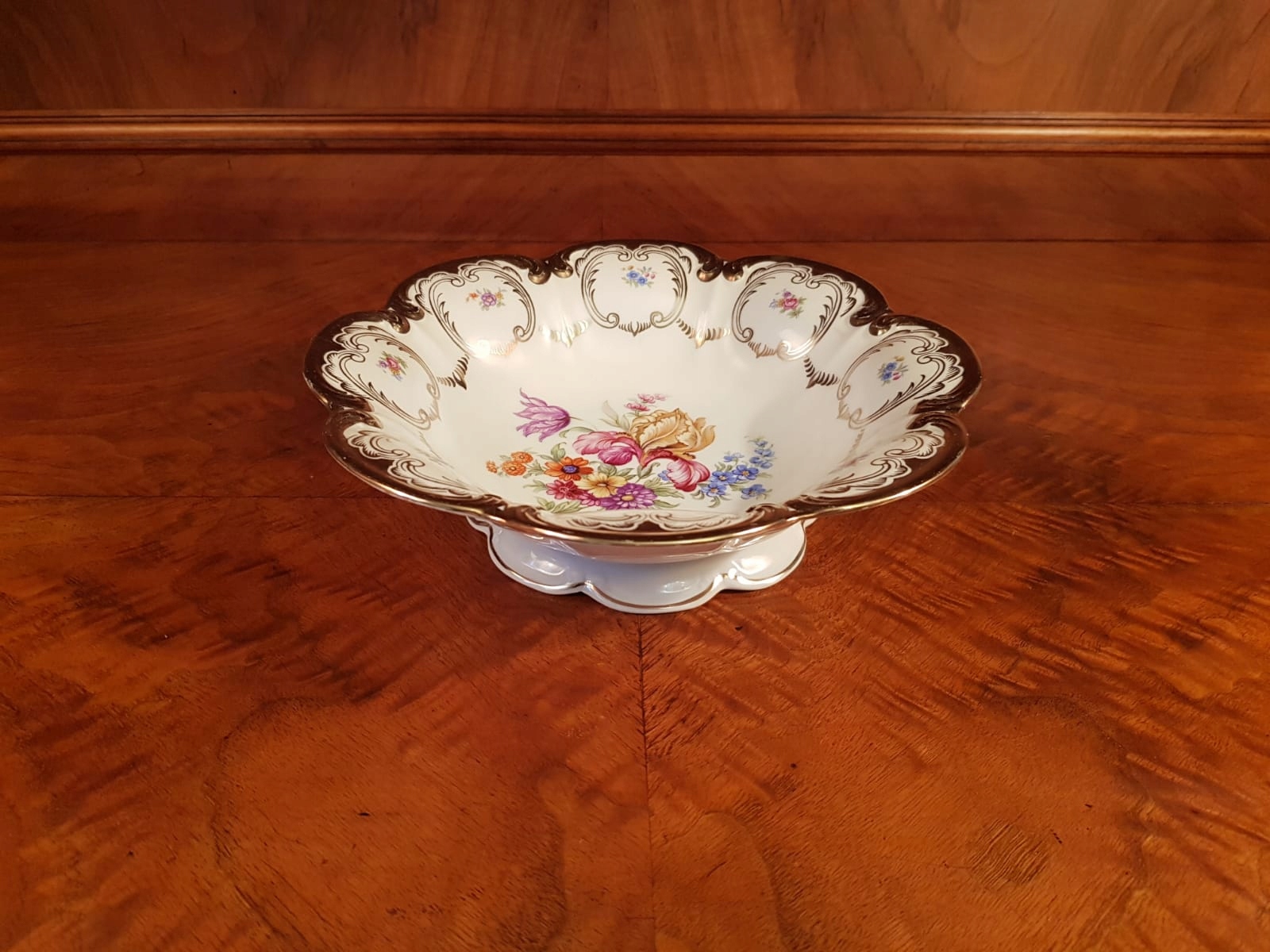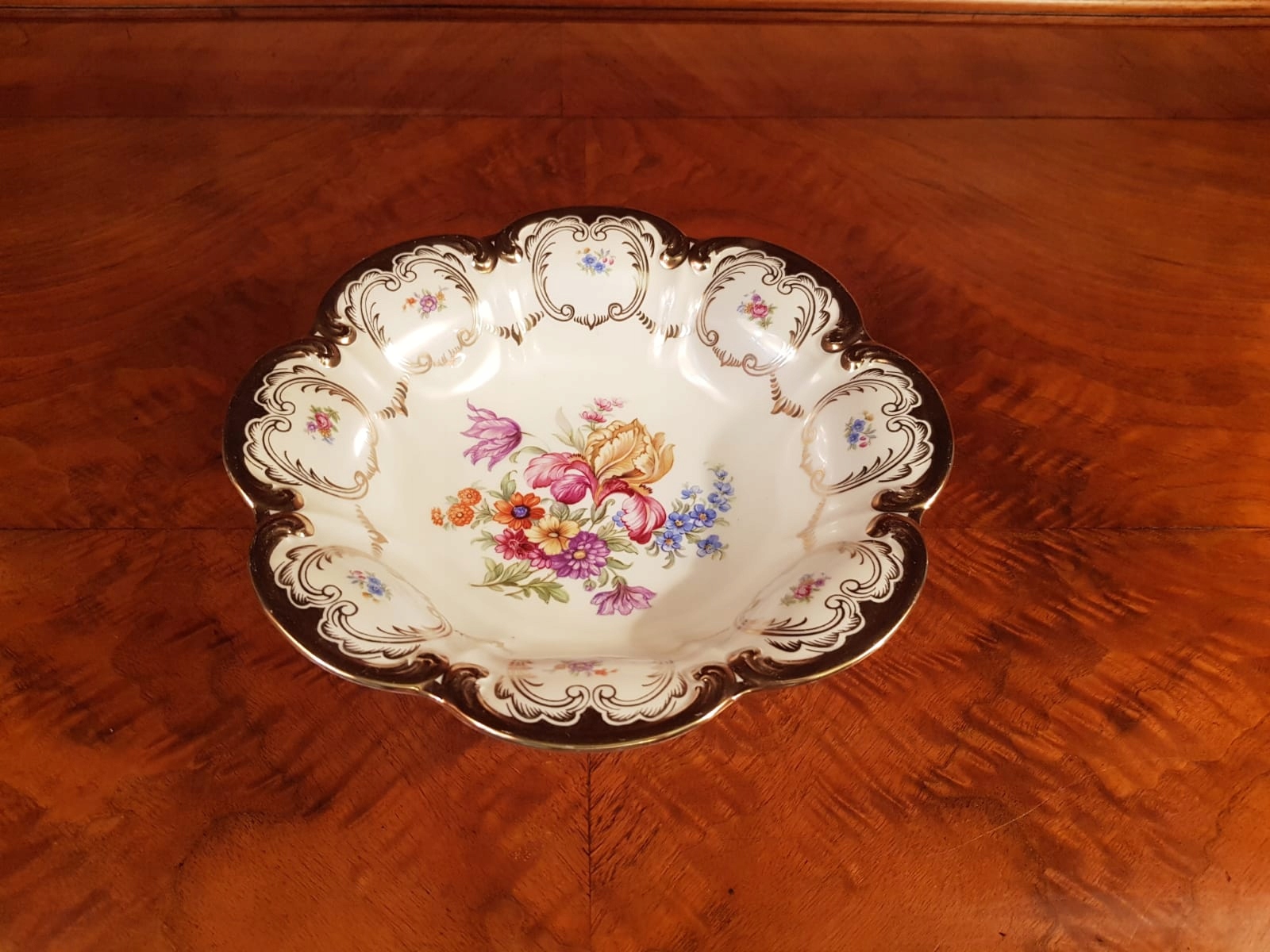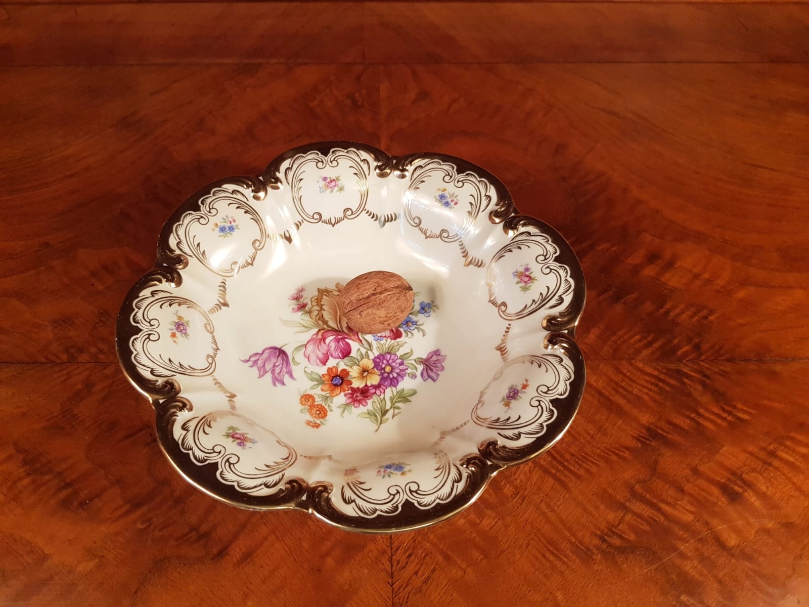 Предметом аукціону є тарілка на основі, прикрашеній квітковими мотивами, позолоченою Tirschenreuth Bavaria.