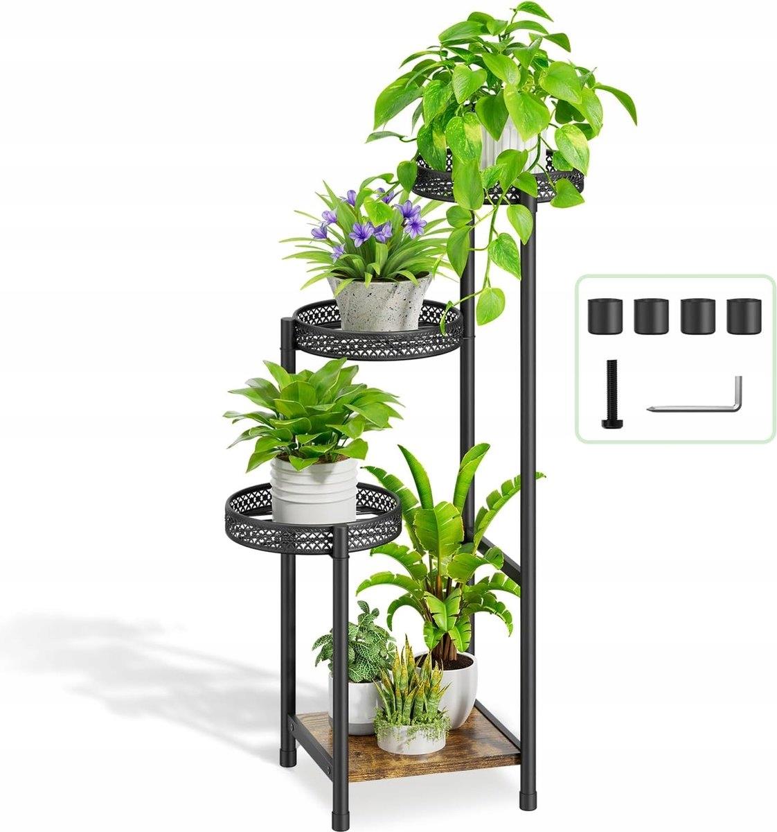 4-рівневий металевий металевий стайон для всередині та зовні, кутові рослини, квіткова полиця для багатьох рослин, сучасна рослина для рослин з дерев’яною тарілкою для офісу, саду, балкона та внутрішнього дворика
