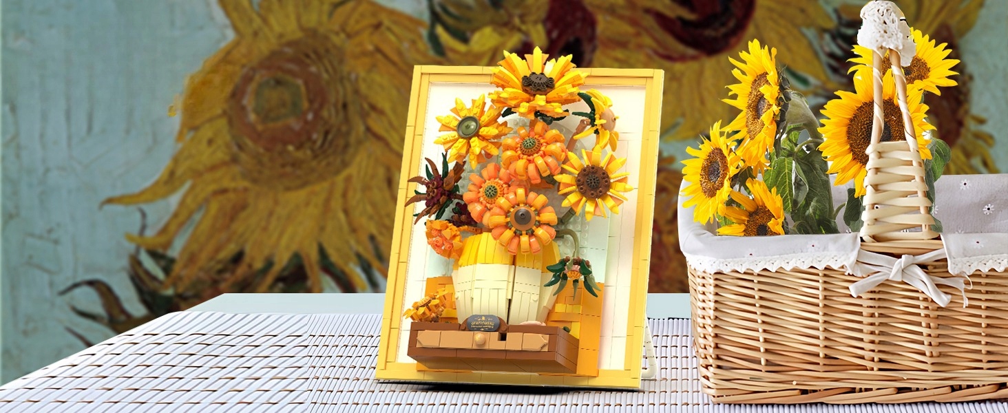 декоративна рамка, виготовлена з блоків, натхненних відомим зображенням Ван Гога! Переробіть свою кімнату з прекрасним набором соняшнику з функцією освітлення руху.