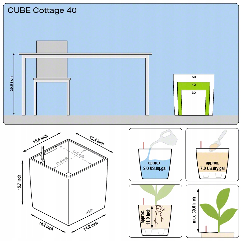 Зовнішні розміри горщика: 39 х 39 см, висота 40 см,