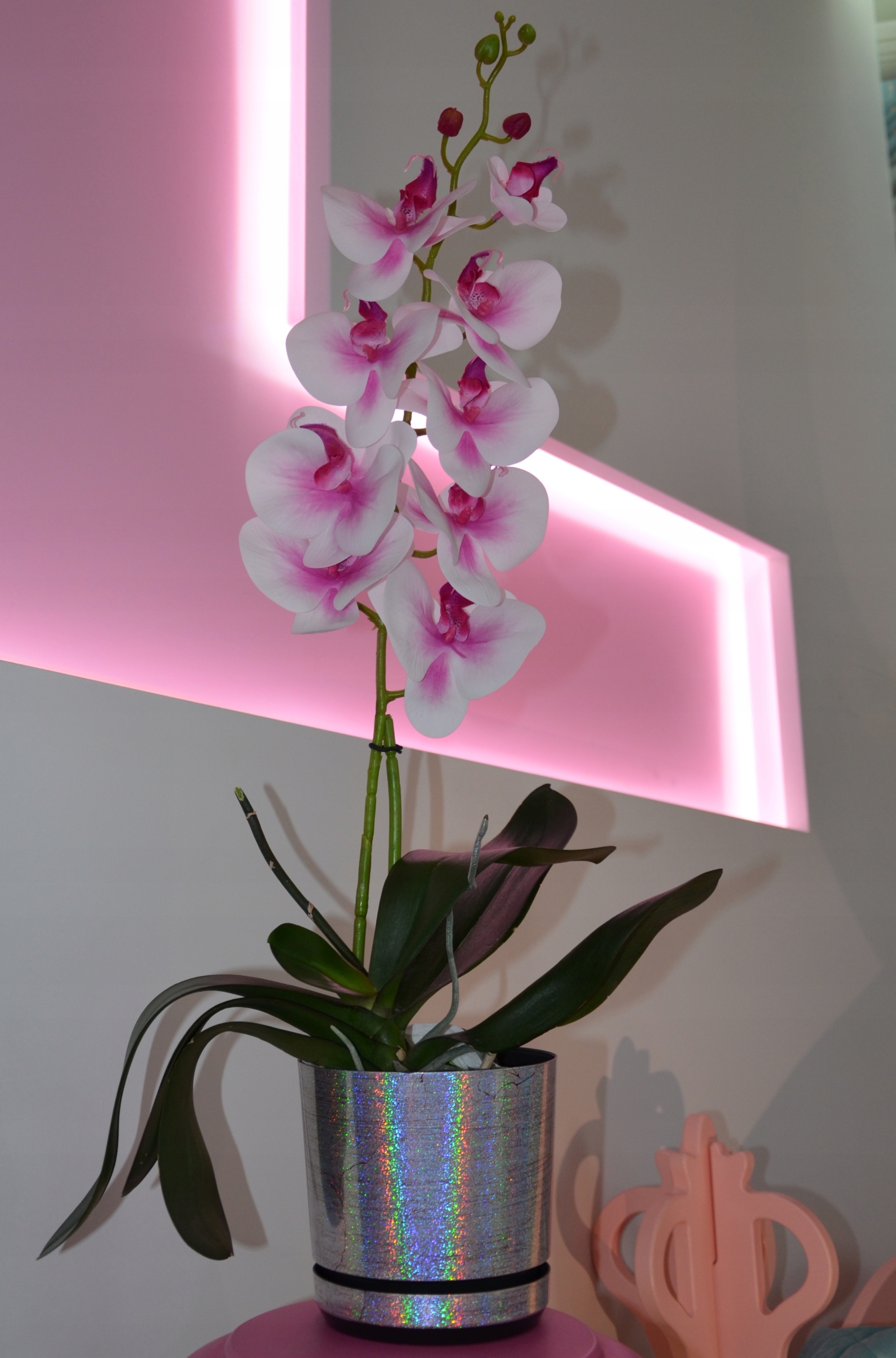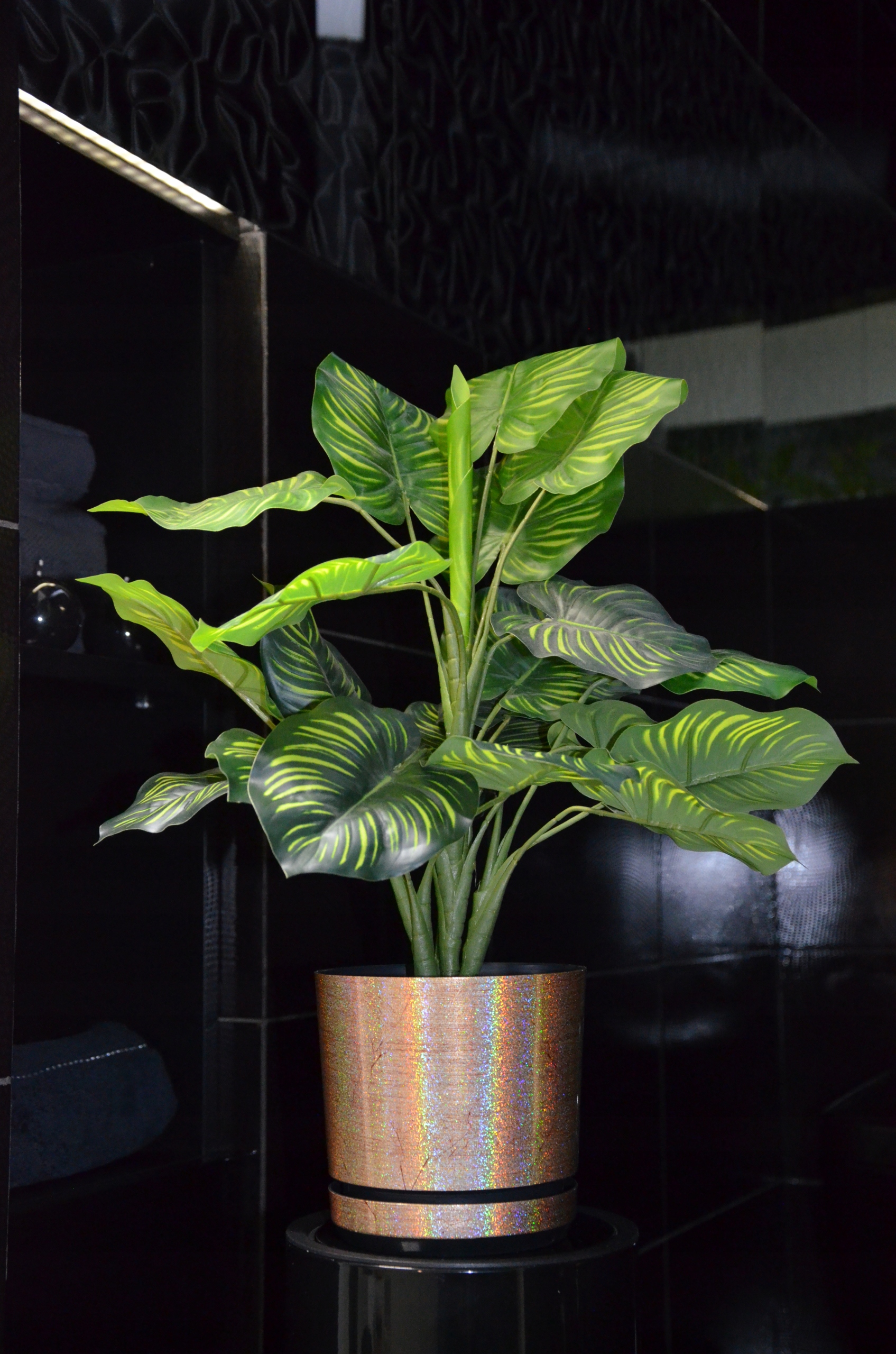 Металевий декор створює тривимірний голографічний ефект, переливаючись усі кольори мають ефект веселки, завдяки чому вазон набуває надзвичайного шарму.