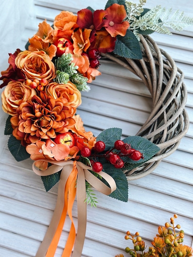 Квітковий осінній вінок на дверях плетений плетений яблуко очерет
