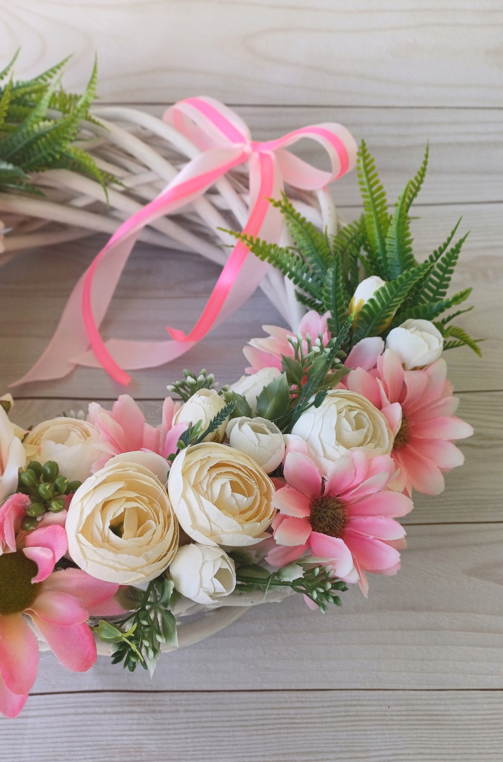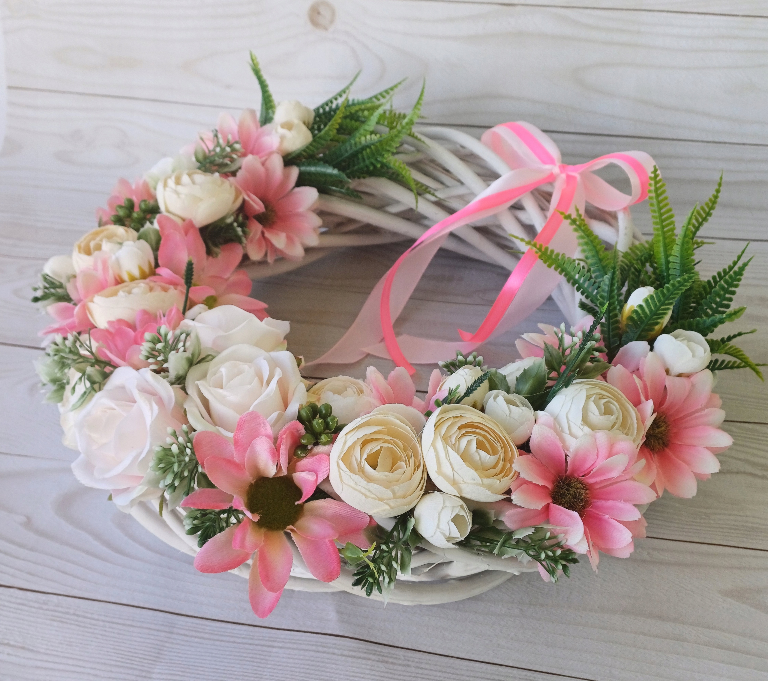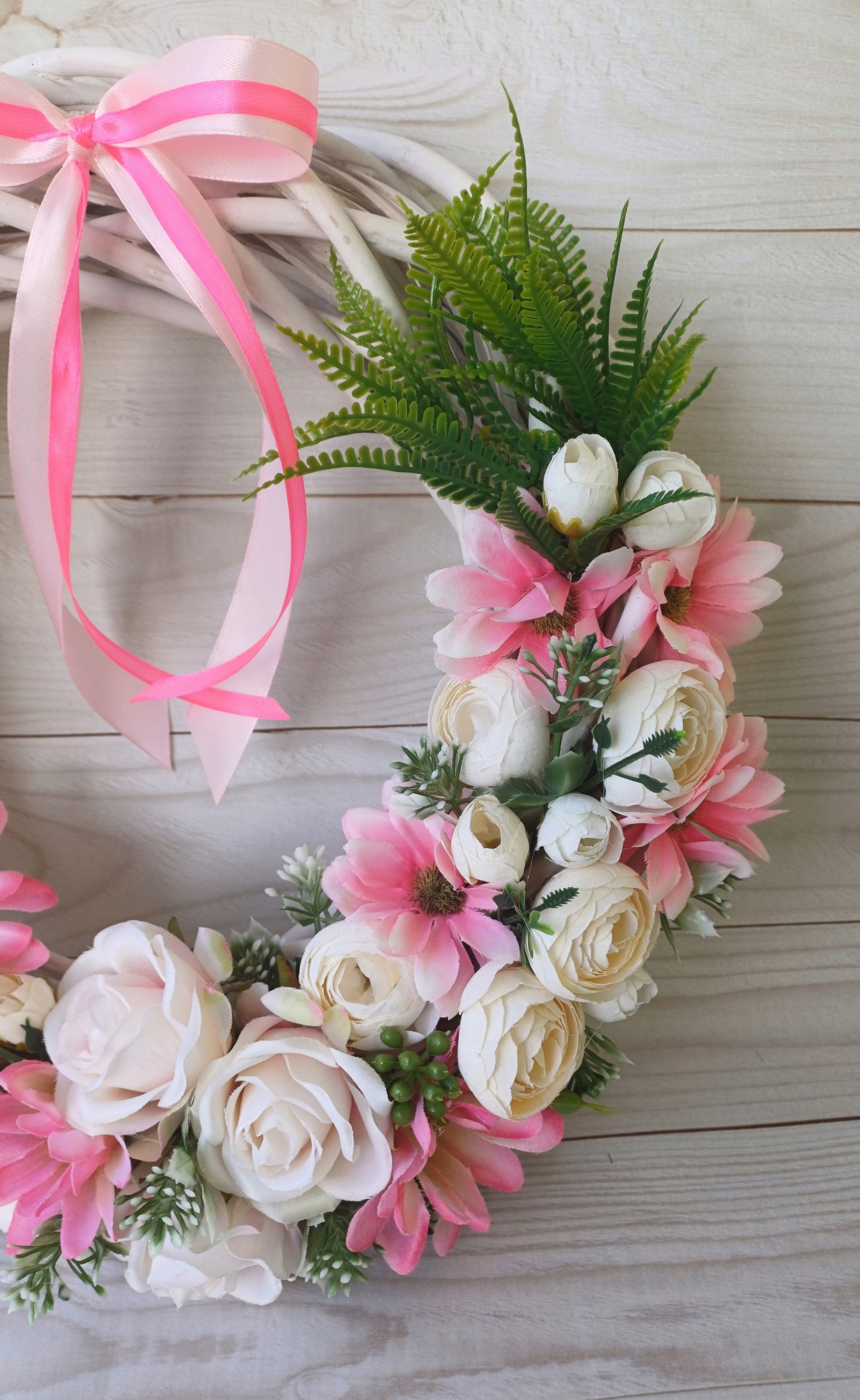 Квітковий вінок білий плетений головний убір для пружинних дверей
