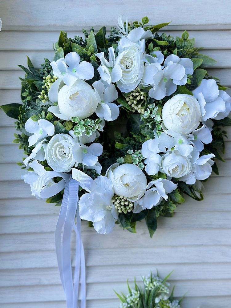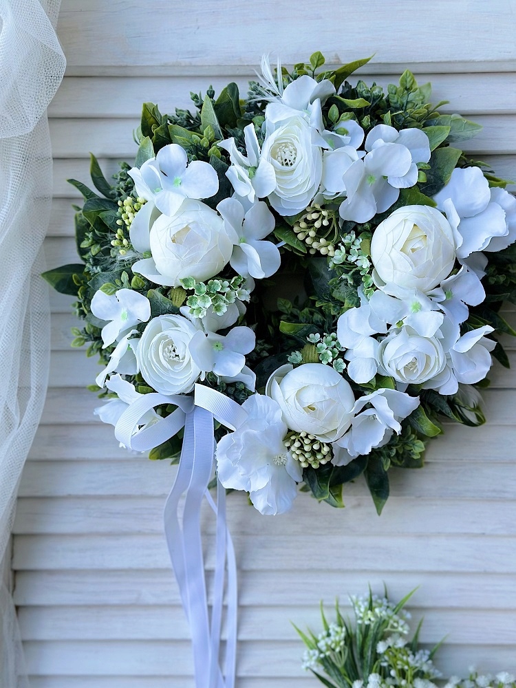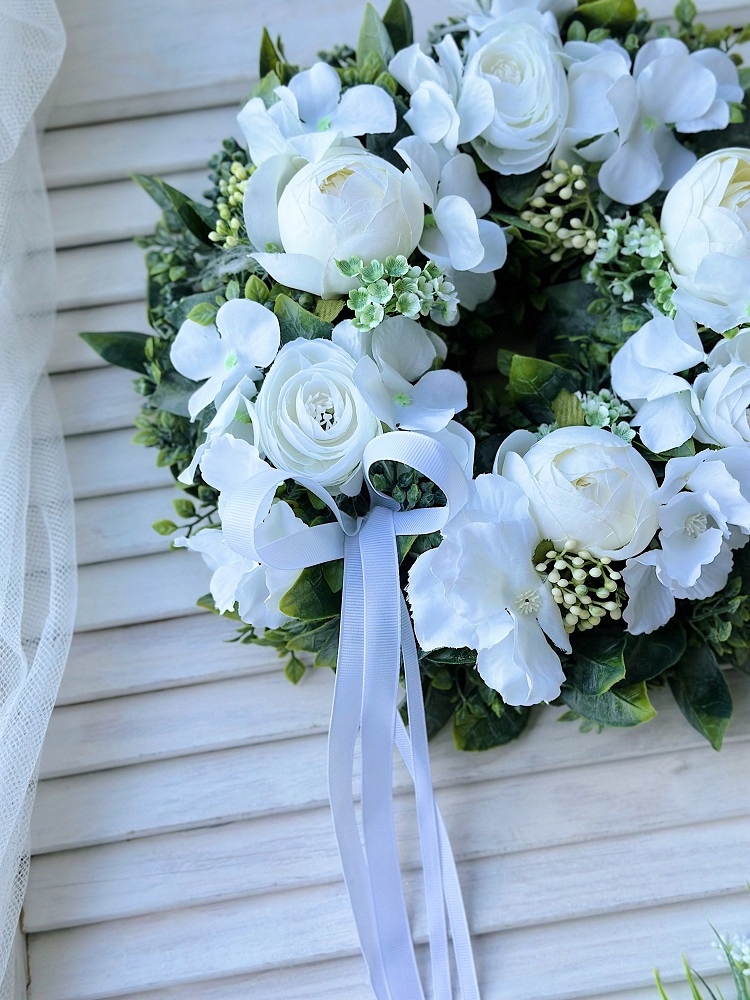 Квітковий вінок на дверях Оздоблення дверного столу Білі весільні троянди