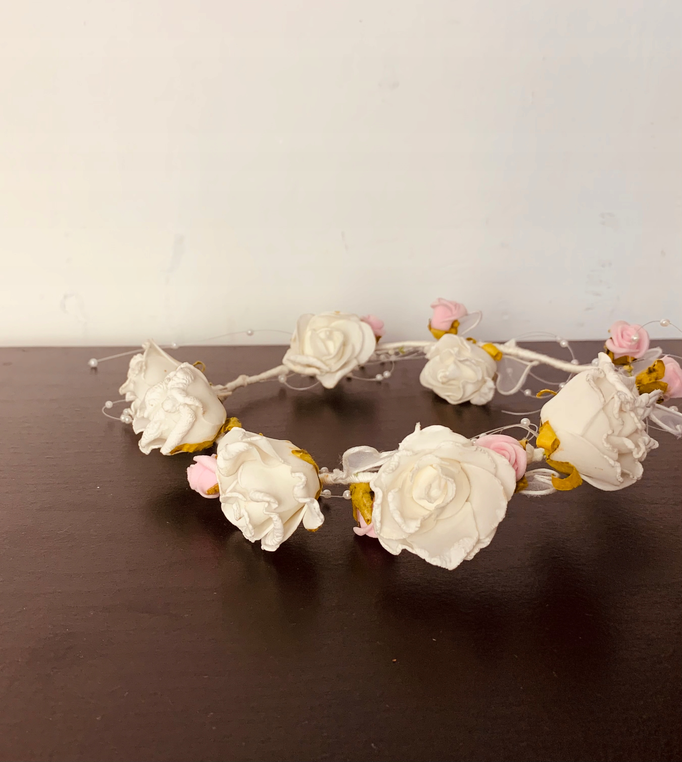Квітковий вінок на голові нареченої дитячі троянди тюль серце перлини народ