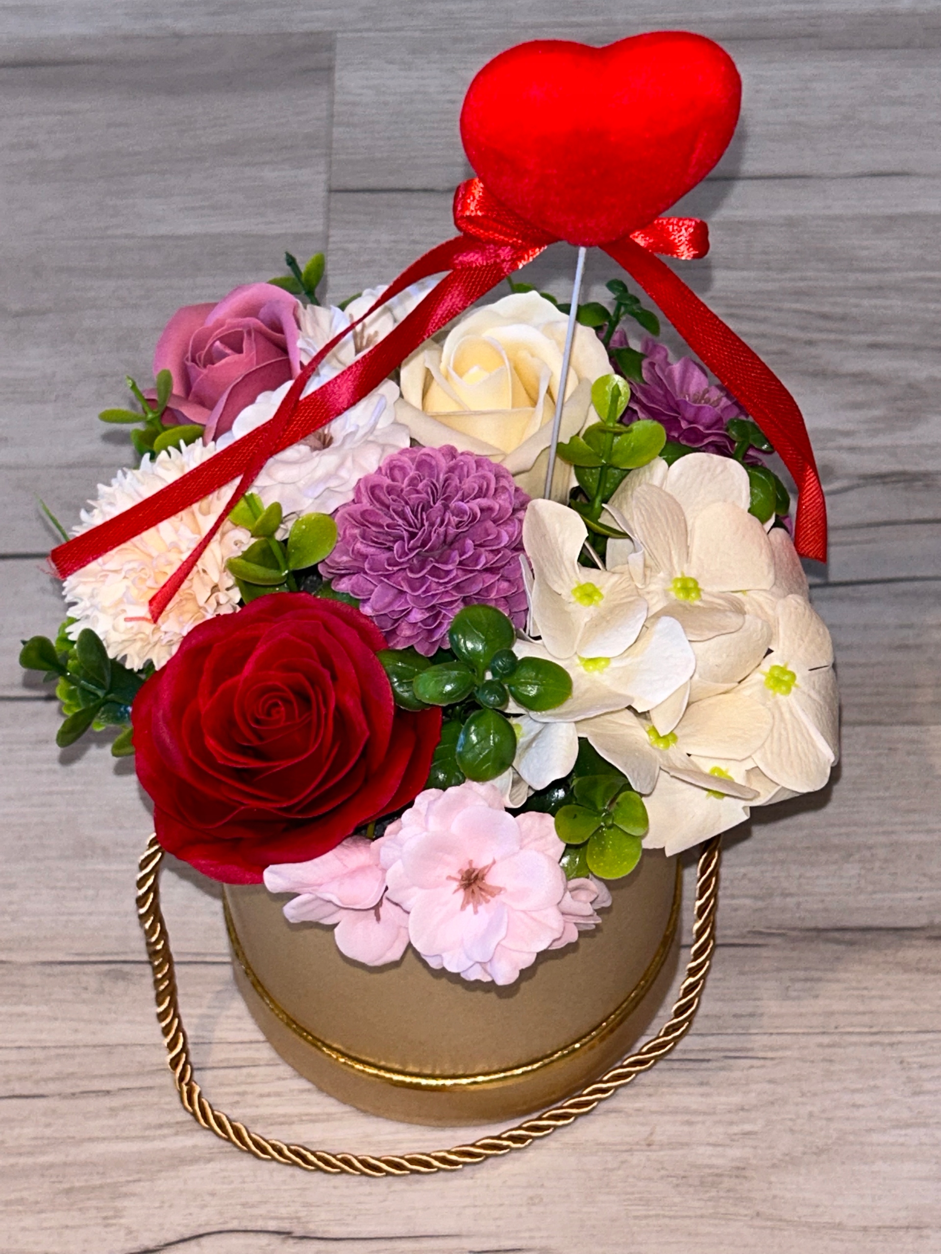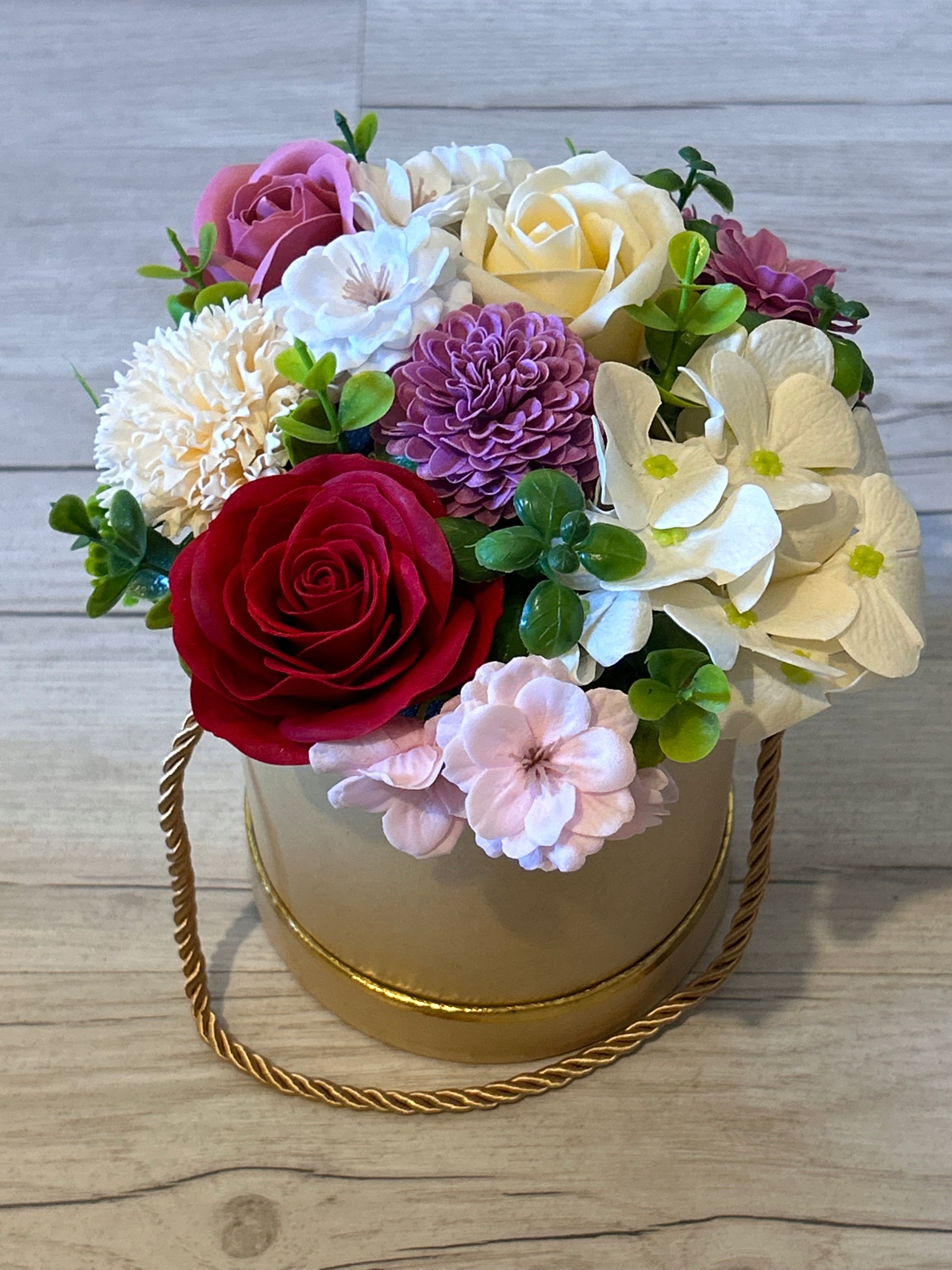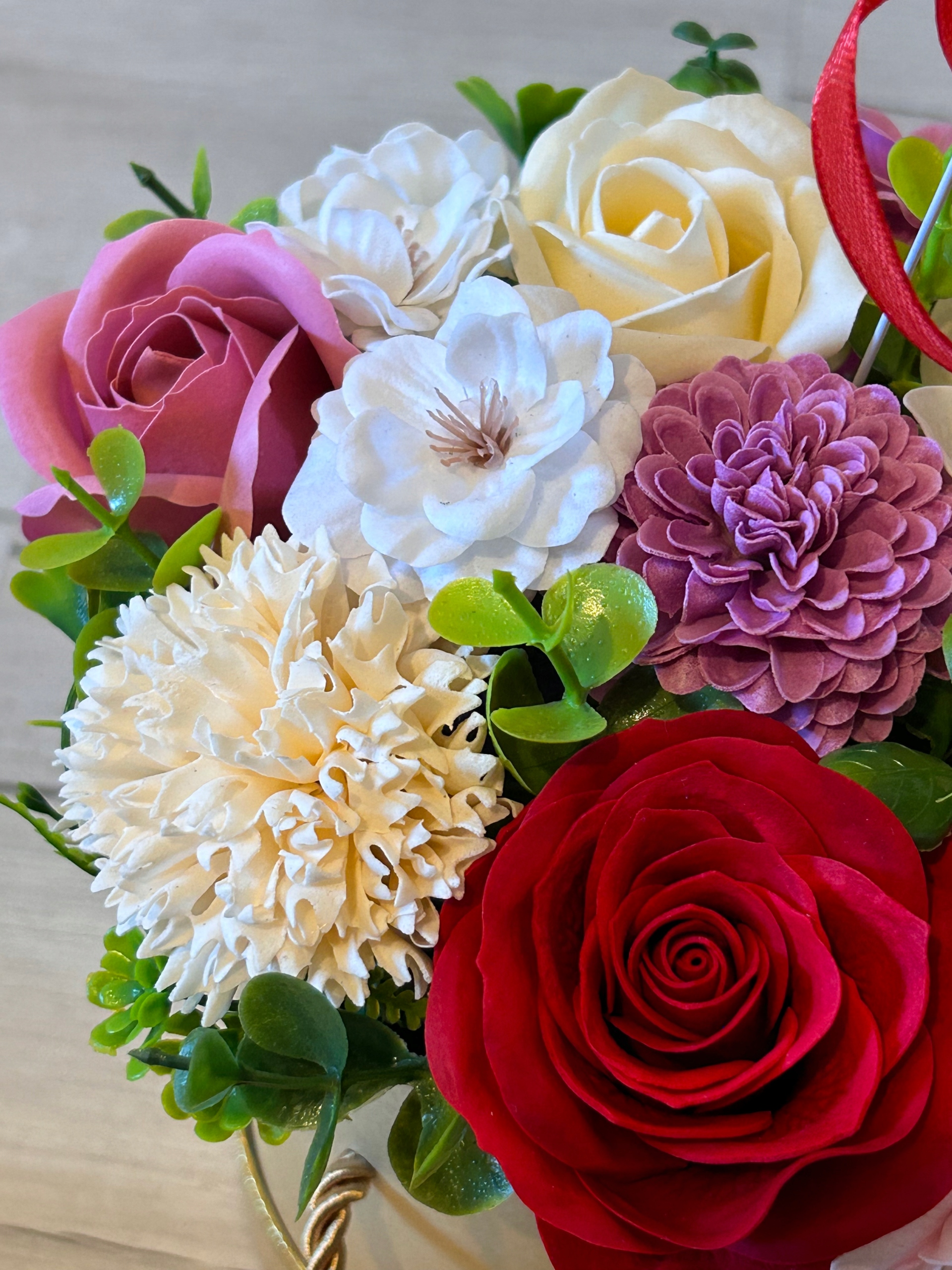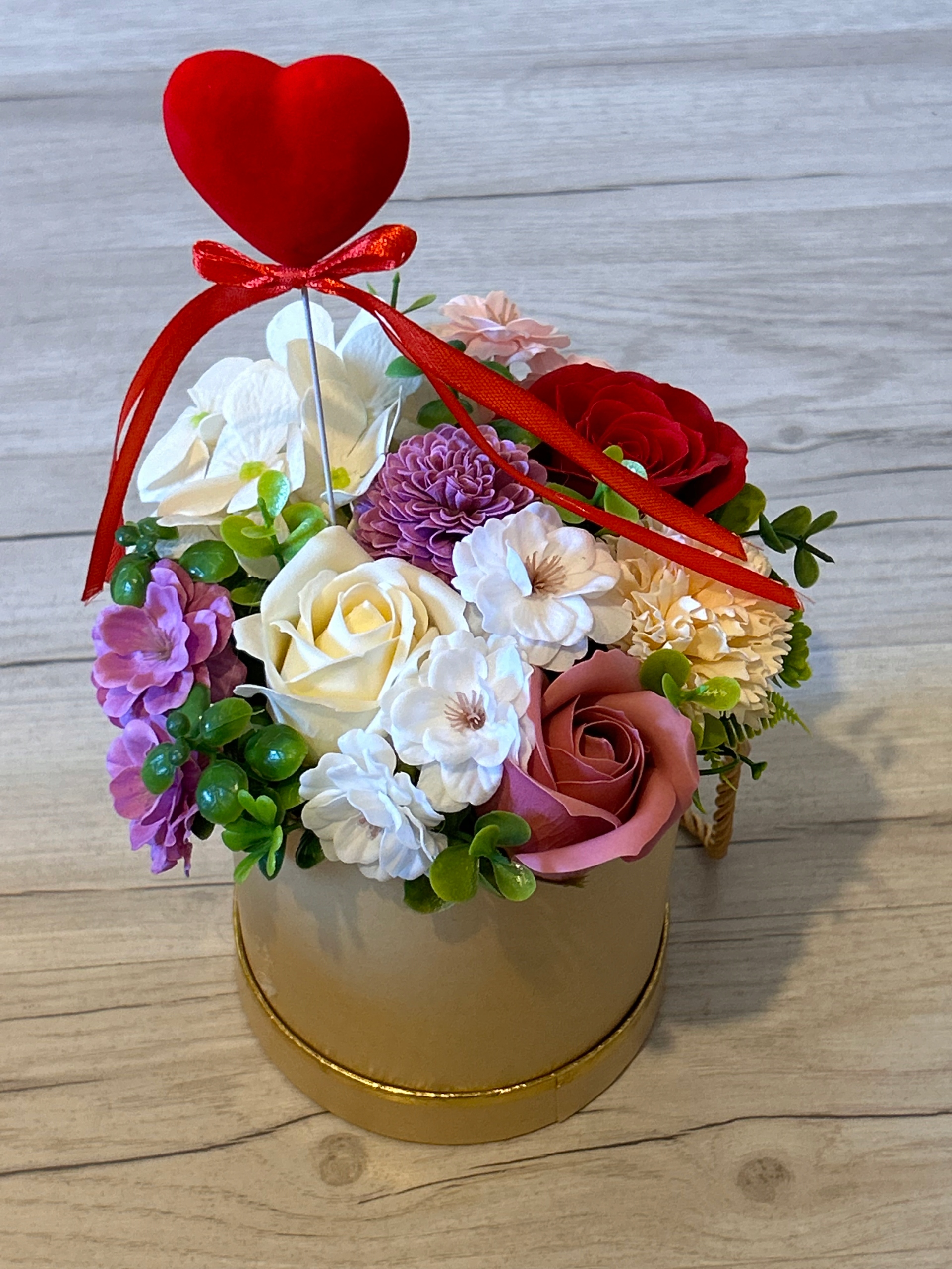Склад була виготовлена з високоякісних мильних квітів та штучних добавок, які гарантують довговічність та естетичний вигляд. Краса довгий час, тому вони можуть служити прикрасою протягом багатьох місяців.