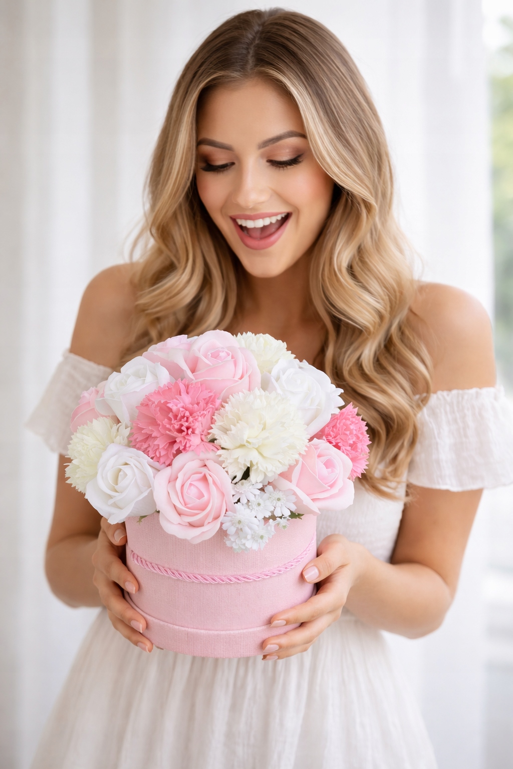 КОРОБКА КВІТОК МИЛО КВІТИ БУКЕТ КВІТІВ НА ДЕНЬ СВЯТОГО ВАЛЕНТИНА ПОДАРУНОК КВИТКА КОРОБКА