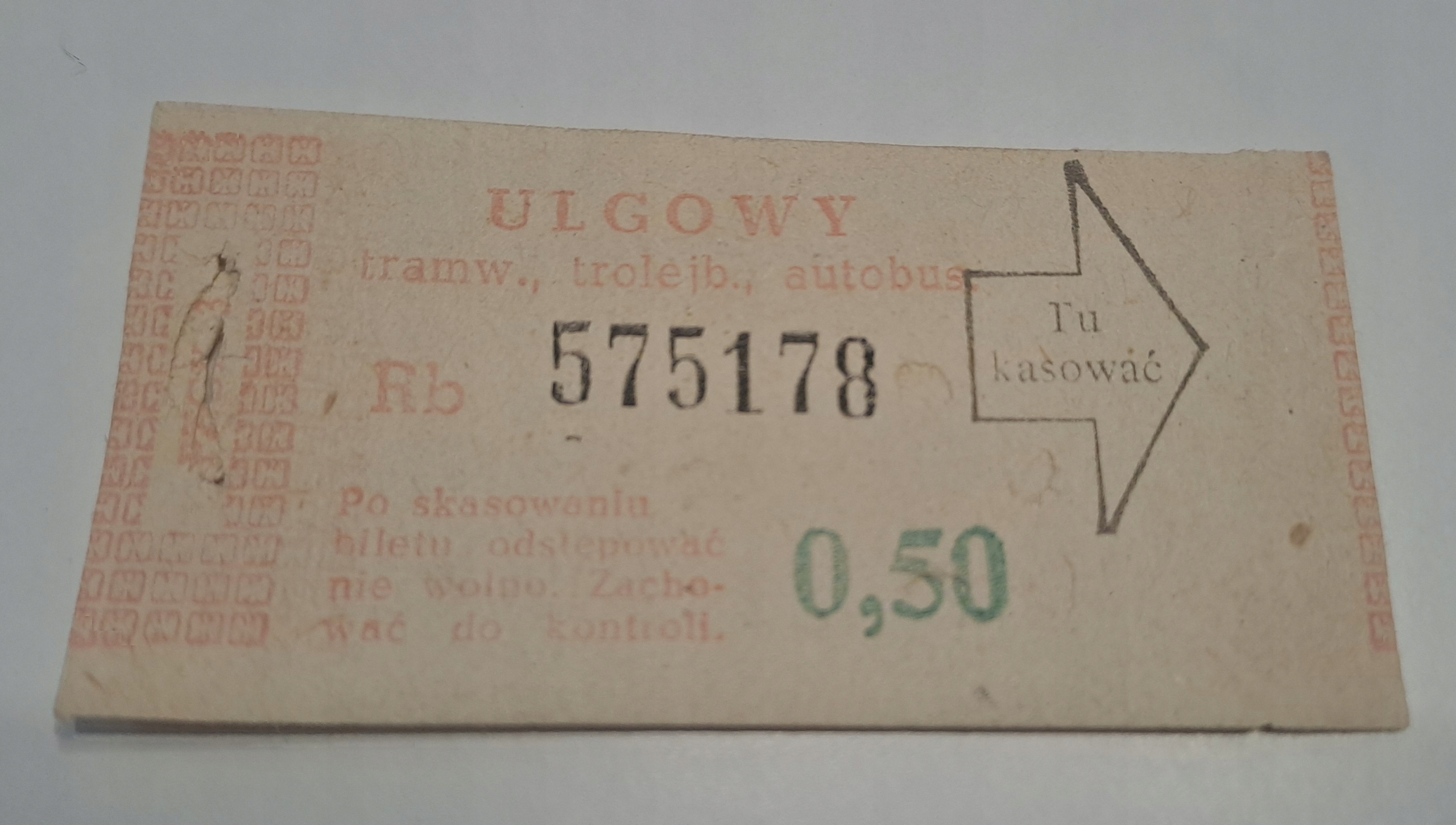 КВИТОК MPK ŁÓDŹ / НАЦІОНАЛЬНИЙ 0,50 PLN (Rb) PRL