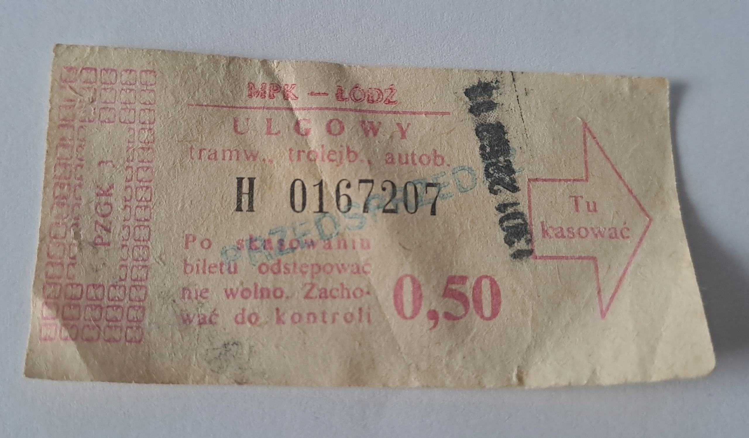 КВИТОК MPK ŁÓDŹ 0,50 PLN (H) ТРАМВАЙ ТРОЛЕЙБУС АВТОБУС PRL