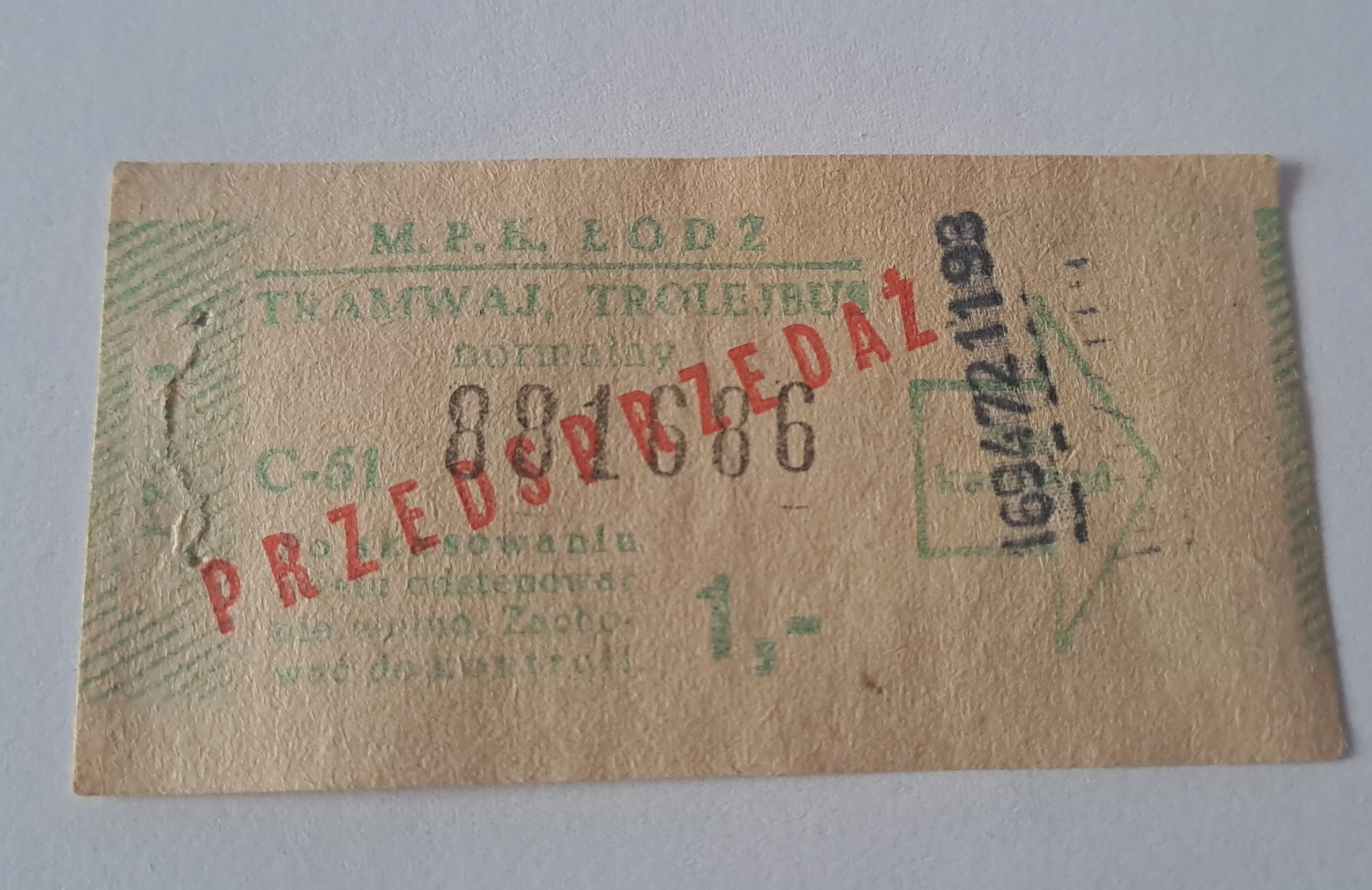 КВИТОК MPK ŁÓDŹ ПОПЕРЕДНІЙ ПРОДАЖ 1 PLN (C-51) ТРАМВАЙ ТРОЛЕЙБУС PRL