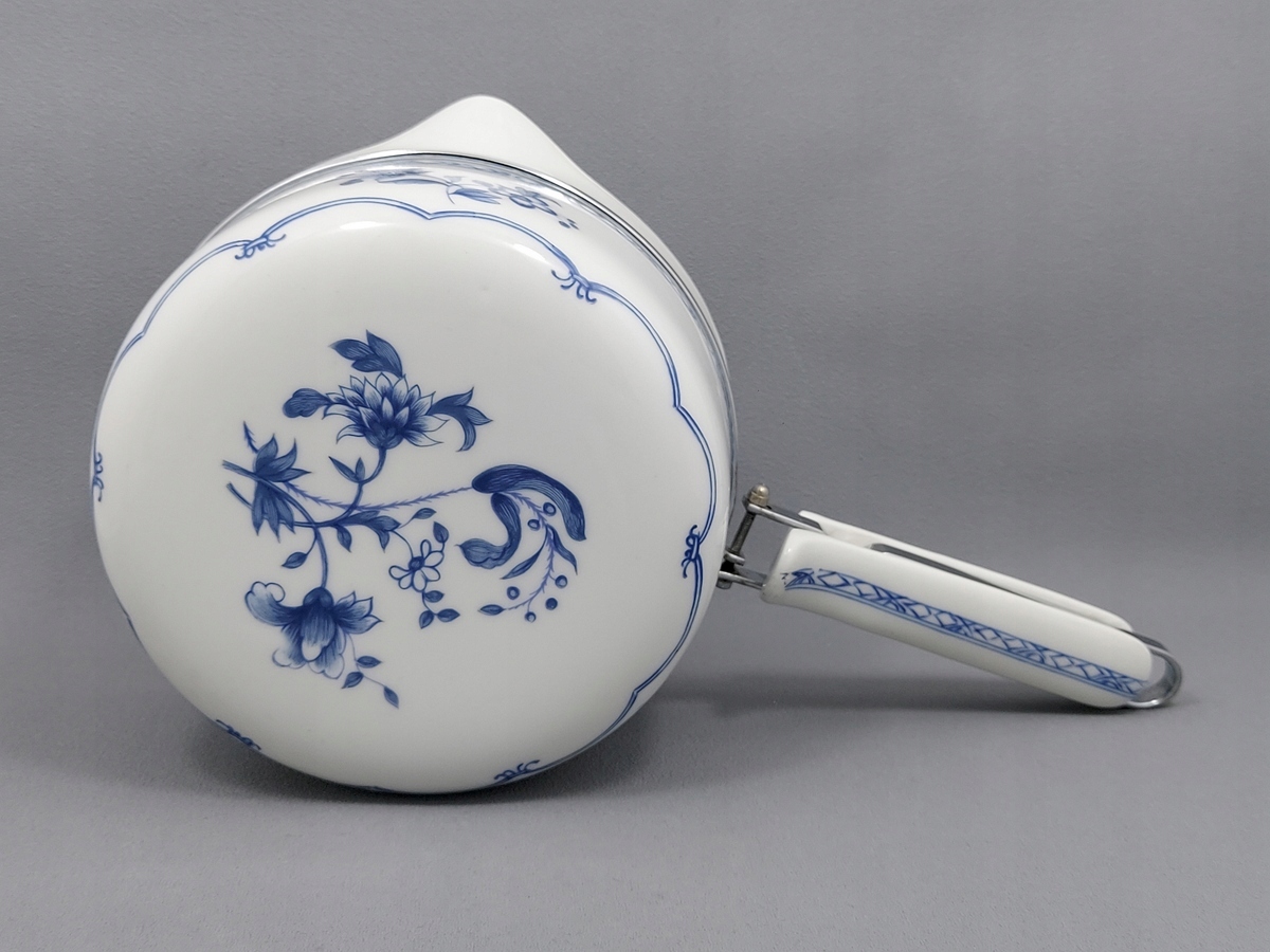 , прикрашені синіми квітковими візерунками, срібним металом,