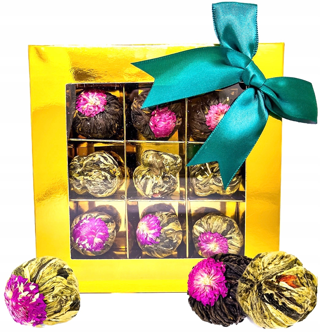 Квітучий чай - 3 різні смаки - 9 штук у красивій золотистій коробці від шоколаду