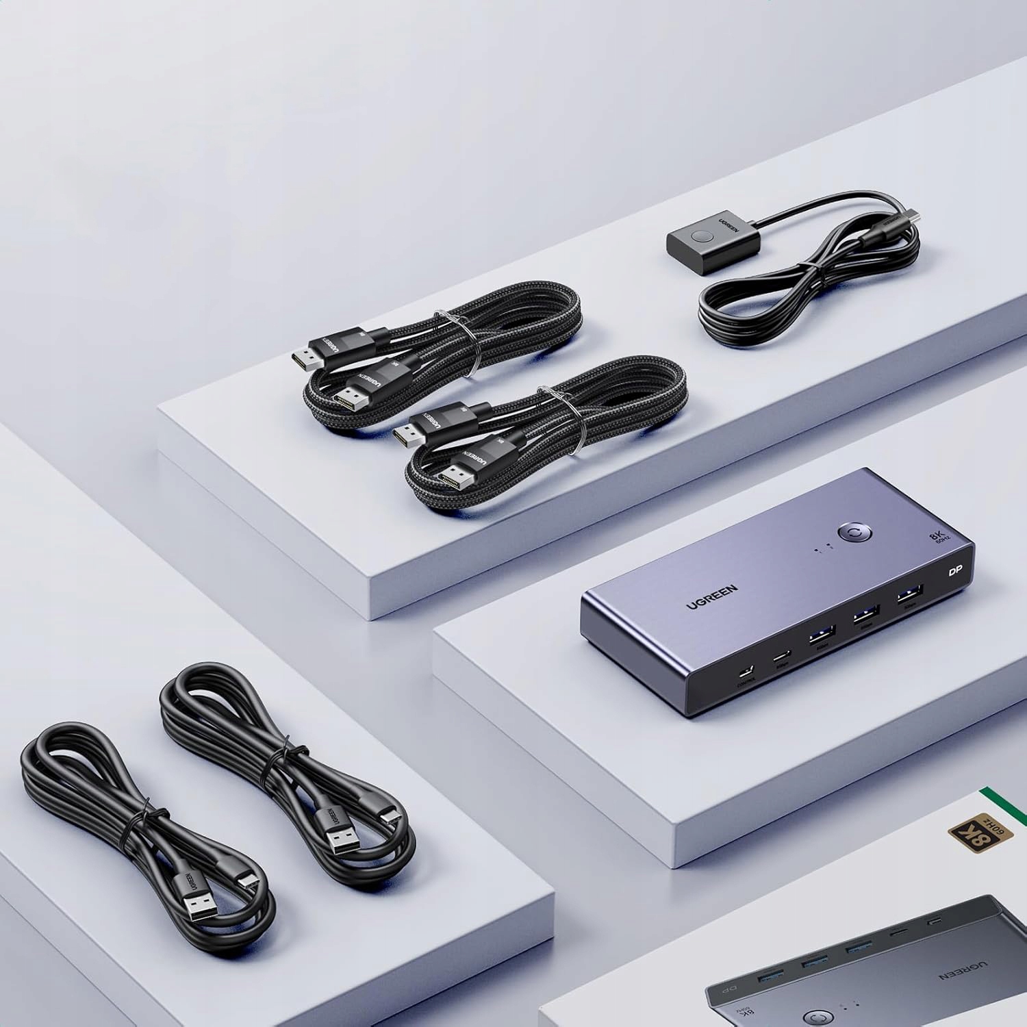 KVM-перемикач UGREEN CM695 DisplayPort 8K із 4 портами USB і кабелем