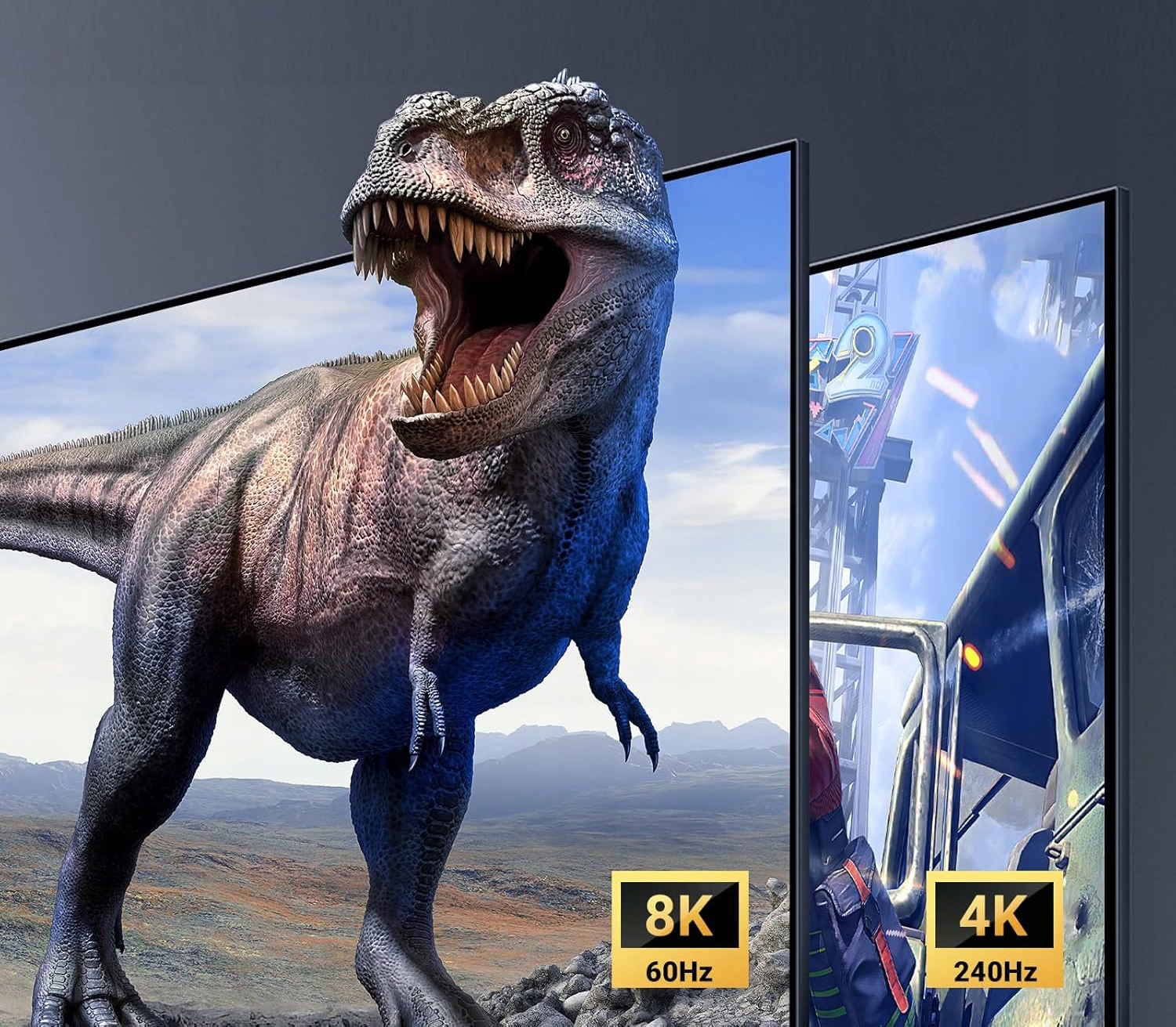 Примітка: Для отримання роздільної здатності 8 к@60 Гц, як комп'ютери, так і монітори повинні підтримувати 8 к, а також слід використовувати реальні кабелі 8K DP1.4, які додаються.