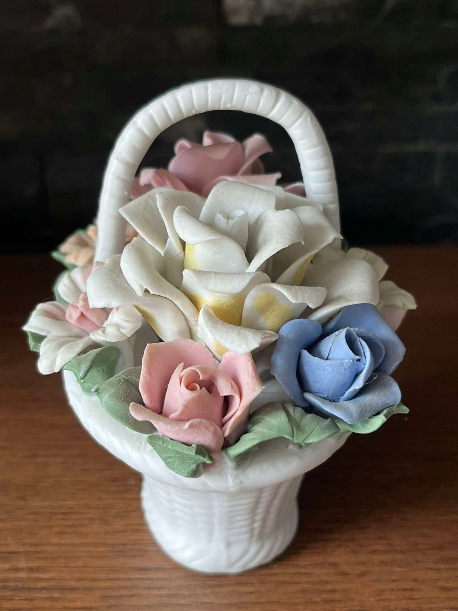 Kwiatki porcelanowe koszyk porcelana biskwitowa