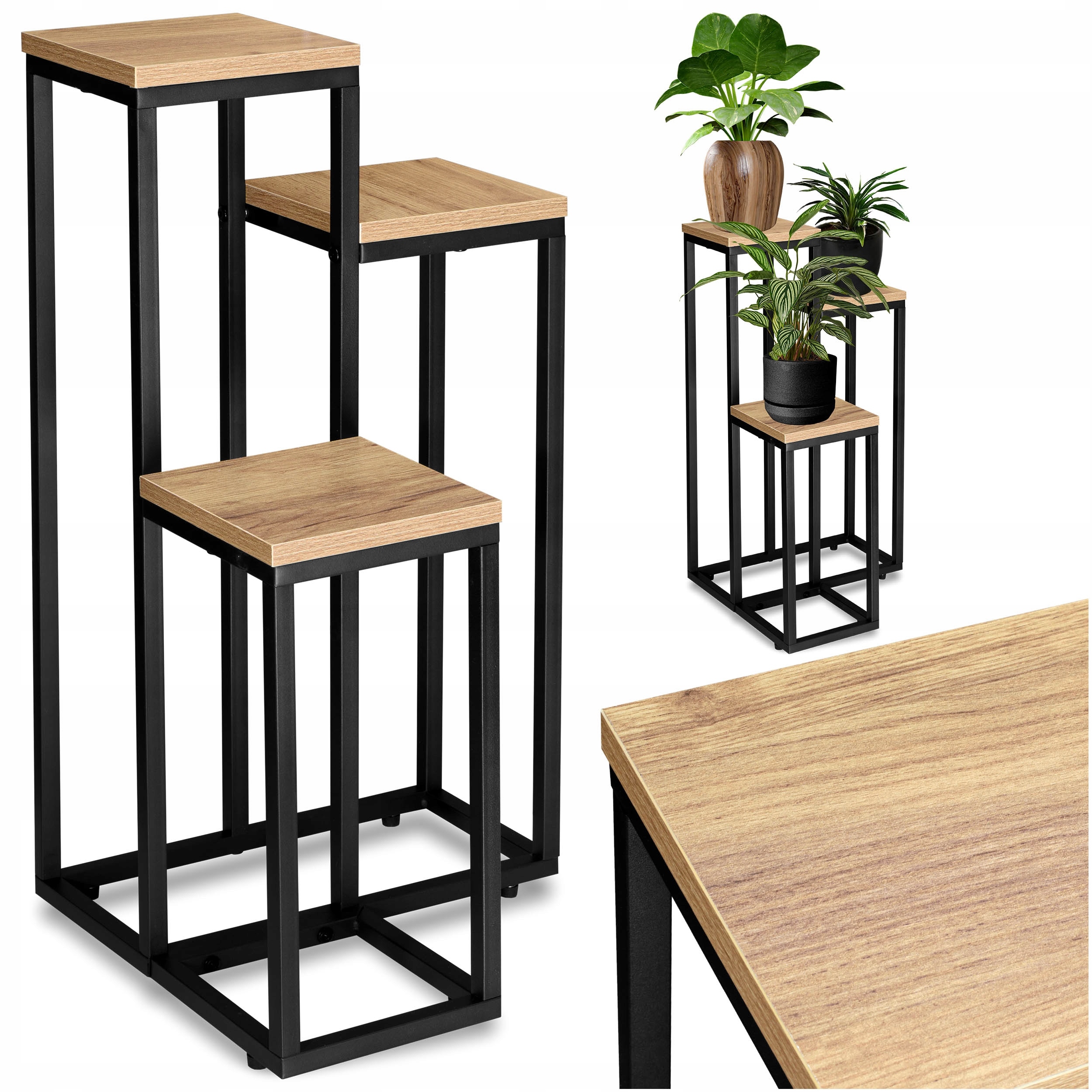 Kwietnik metalowy stojący MUNIR do salonu loft industrial czarny mat mocny